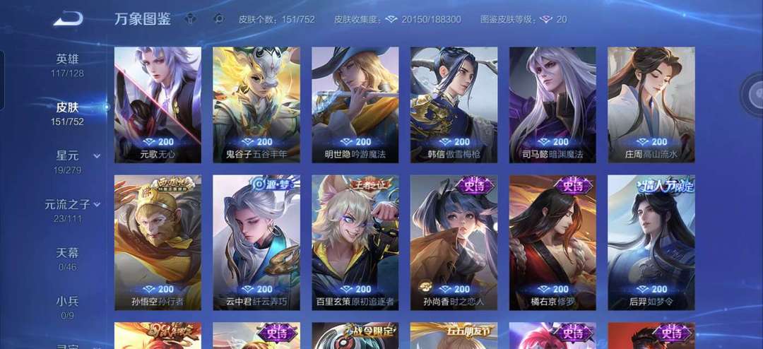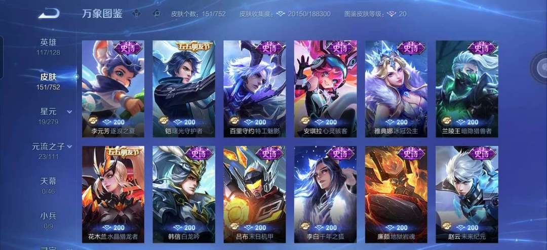 女生号 贵10 多皮肤多传说 别拿那些空号v10来比 要看性价比 貂蝉武则天夏侯惇孙悟空李白鲁班小乔荣耀水晶 妲己九尾无双皮肤 80个传说 473皮肤