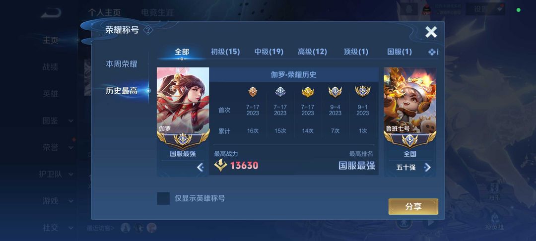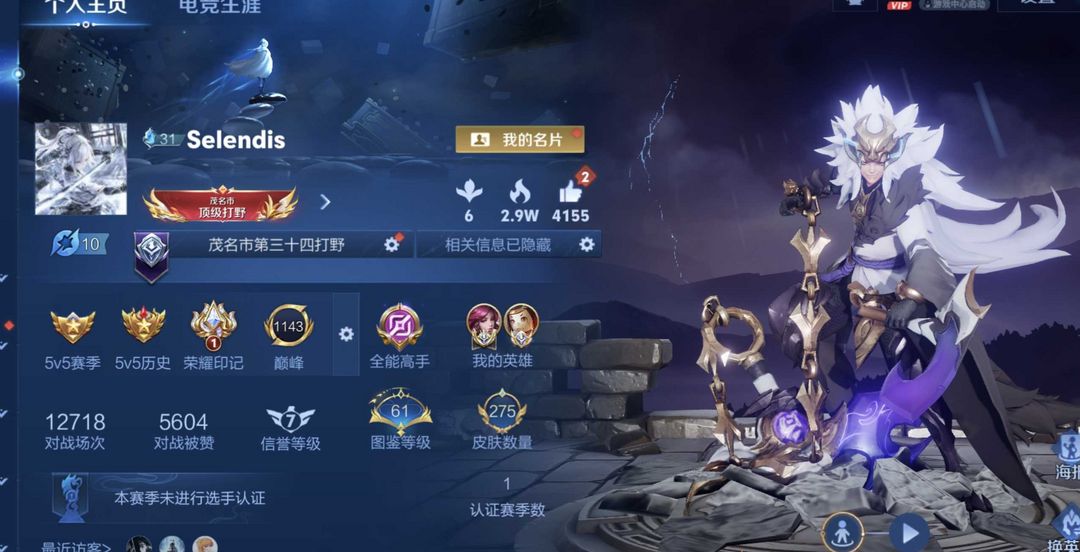 历史双大国276皮✨可排位可巅峰✨1.3w伽罗1.15w卤蛋✨白虎志巅峰李逍遥✨不要挂机就行