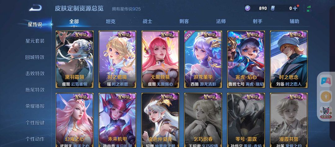 v10、12水562皮、死亡执政官、刘备星传说时之思念、小兵皮肤大耳狗甜茶、瑶无双真我赫兹、愿照·九州拓、怪盗基德、画中仙、至尊宝、凤求凰、神威、天魔缭乱