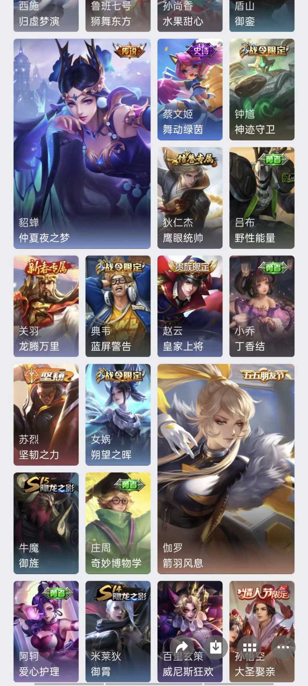 v10、524皮5水4无双、遇见神鼓、齐天大圣、白虎志、韩信荣耀典藏、72传说、愿照·九州拓、时之魔女、瑶无双、青丘、九尾、神器明辉仪