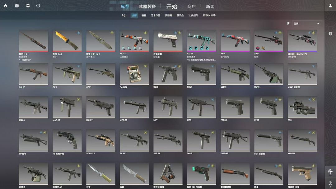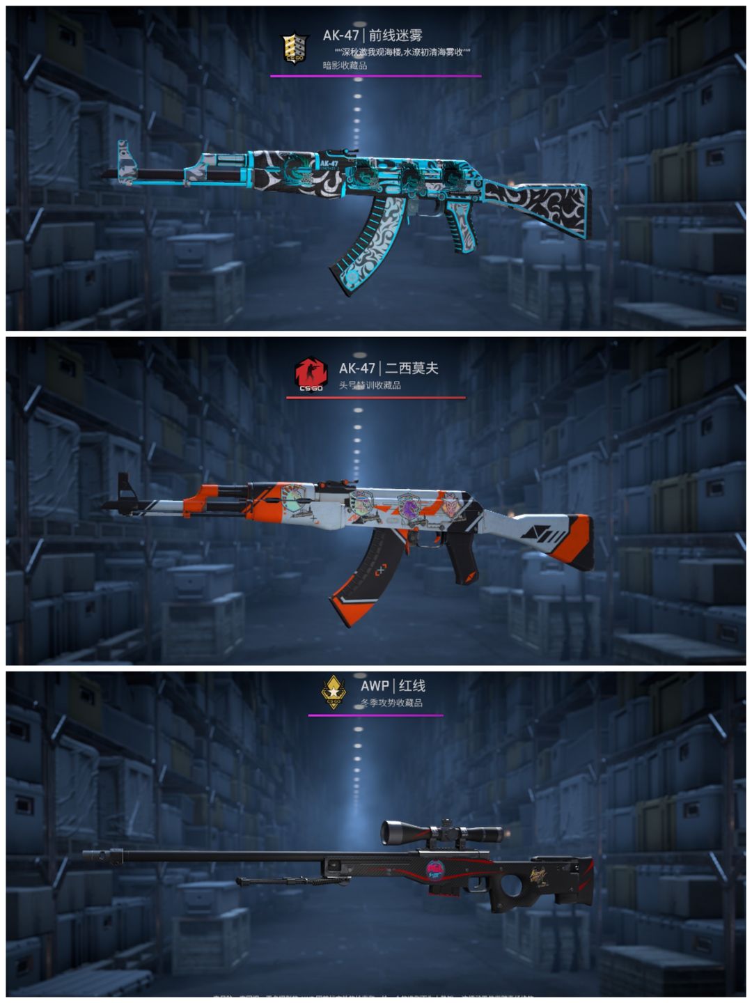 完美1463♥虎牙熊刀♥森林骷髅匕首♥外表生锈短剑♥二西莫夫AK♥红线AWP♥沙鹰印花集♥租号看描述