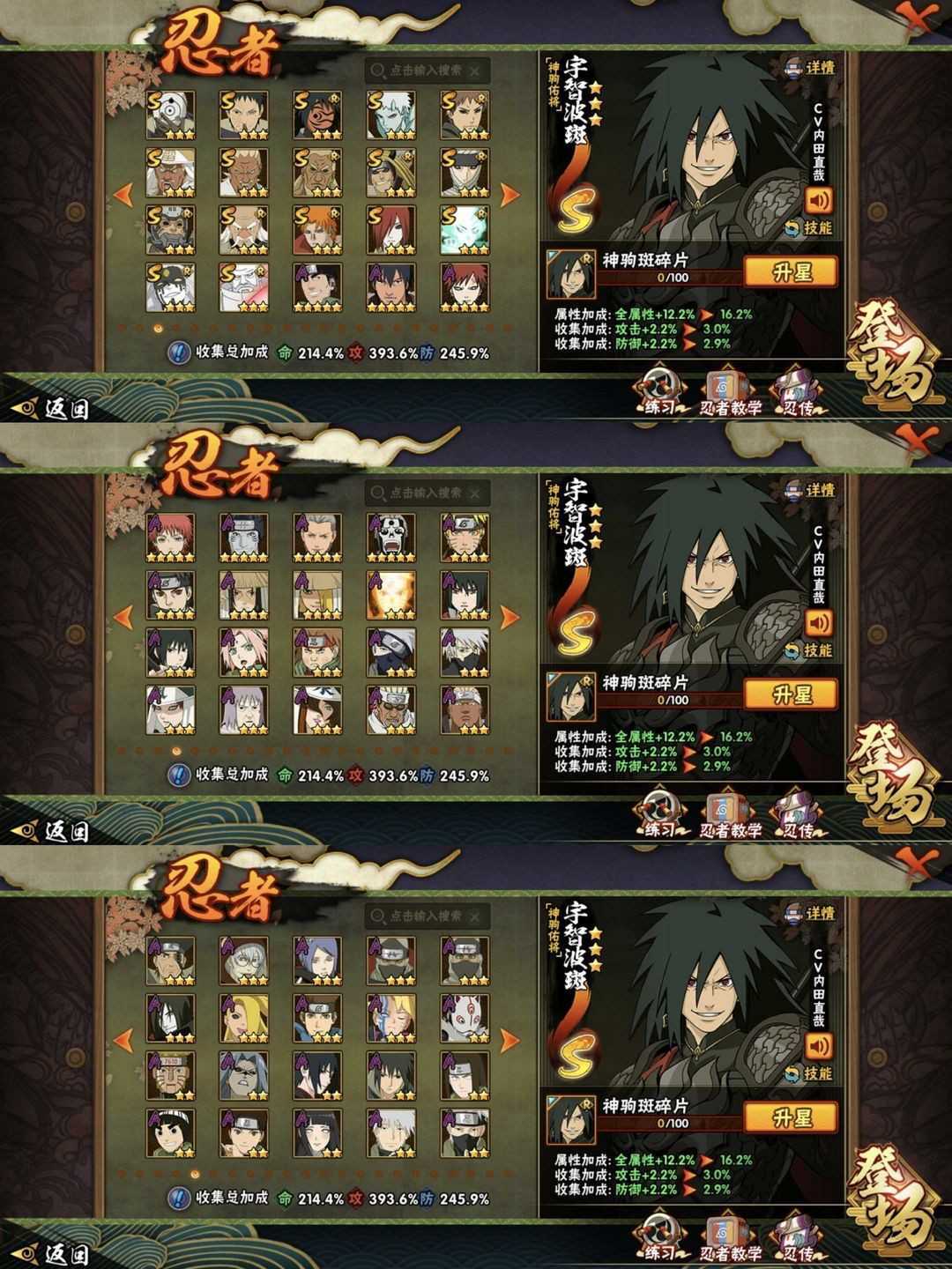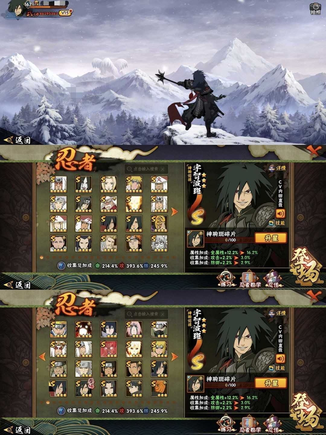 4600w战力✨驹驹斑已秒✨速通团本✨十尾带土已秒✨五影会谈斑✨全忍全通✨阴九尾水门✨侠隐佐助