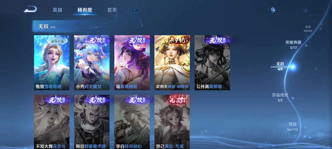 女生号 贵10 多皮肤多传说 别拿那些空号v10来比 要看性价比 貂蝉武则天夏侯惇孙悟空李白鲁班小乔荣耀水晶 妲己九尾无双皮肤 80个传说 473皮肤