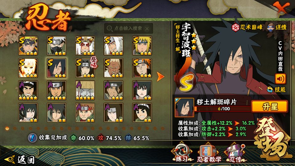15S 阴金水门★传说自来也★须佐卡卡西★忍战艾★秽土解斑★须佐佐助