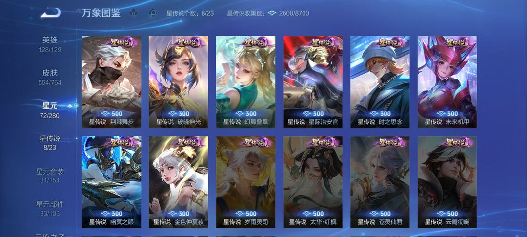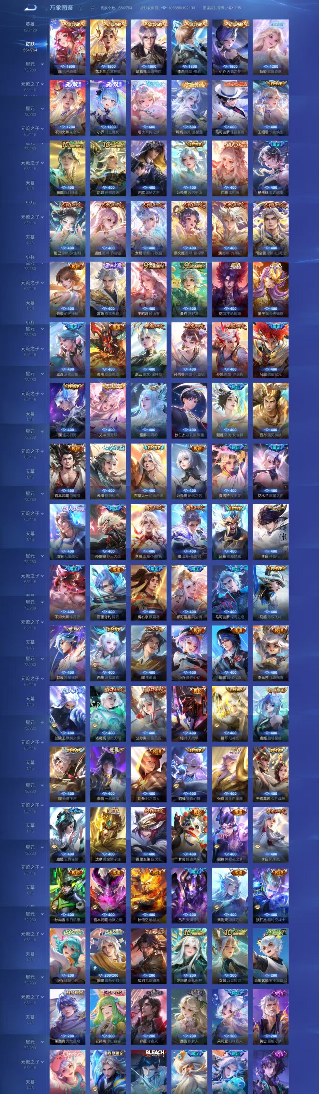 V10、543皮14水、吕布典藏-千魇归渊、愿照·九州拓、愿照·众生和、怪盗基德、伽罗星传说红枫、瑶典藏拾光映像、冥王哈迪斯、、龙年限定、齐天大圣