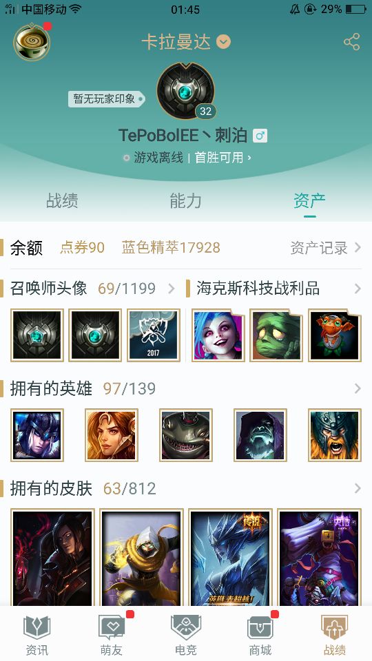 首页 > 租号大厅 > 英雄联盟 > 联盟二区/卡拉曼达 > 卡拉曼达,黄金可打排位,不能逃跑,100个英雄,六十多个皮肤,各种限定