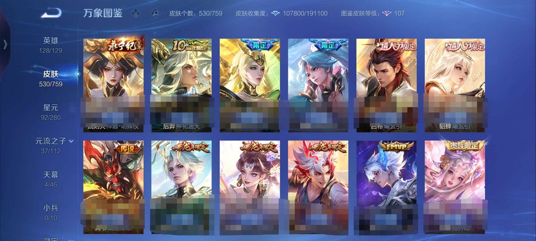 【非云直上】V10★皮肤榜一★539皮满典藏★鲁班时之奇旅会员★虞姬黛羽霜翎星元★吕布白金战神★全能大师★多金标★个性按键