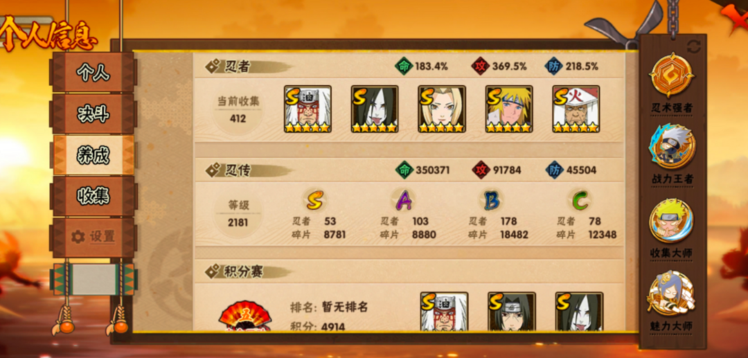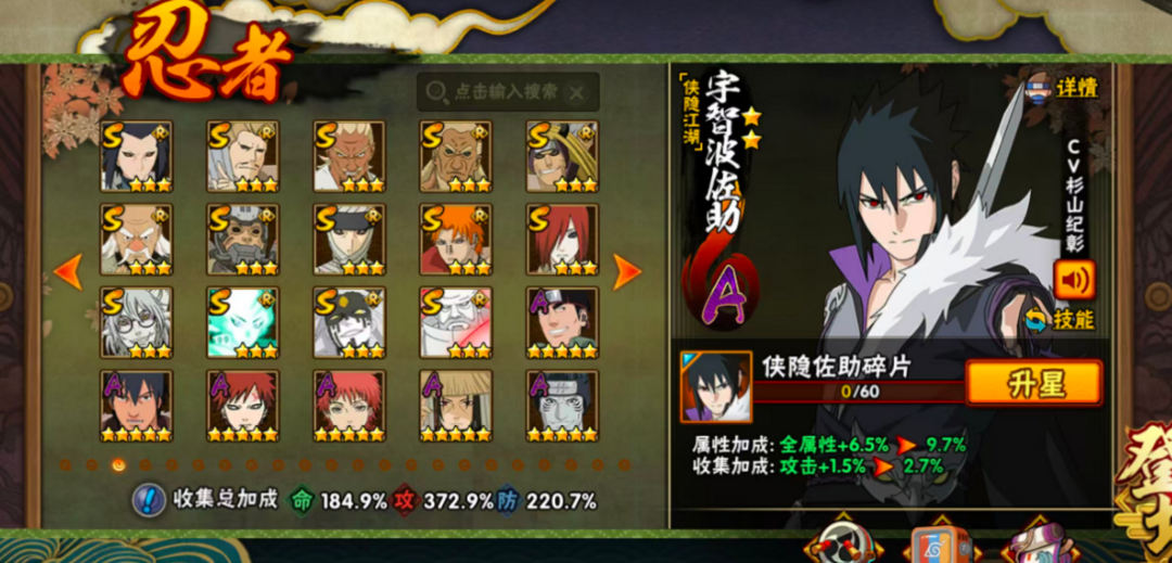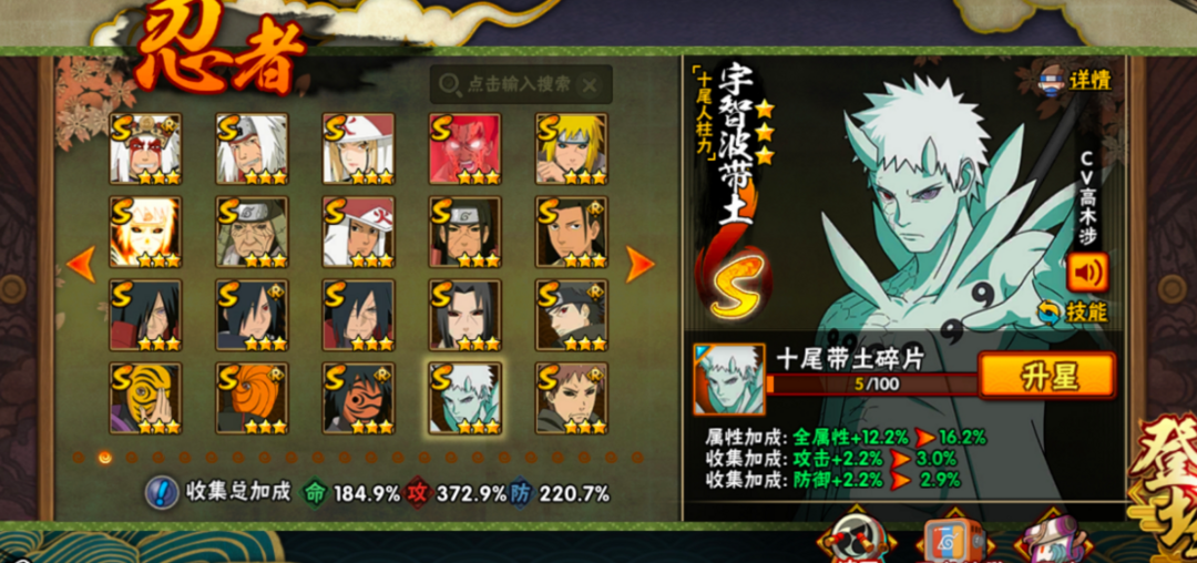 414忍者3827万战力全密卷54S✨十尾带土黑绝九喇嘛水门鸣人须佐卡卡西✨红夜忍战漂解斑全高招A