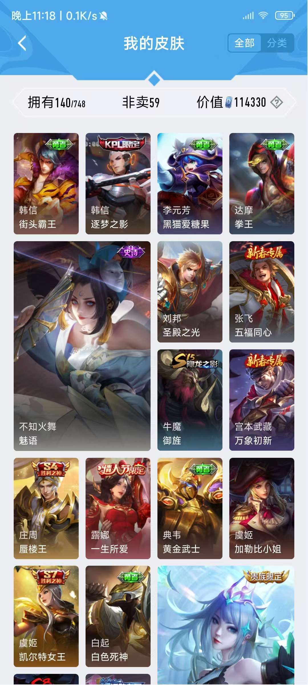 V11✨780皮肤✨马年全皮✨颠倒童话✨千魇归渊✨无相✨神罪✨山海经天机白泽✨全套死神联动✨全套穆夏✨馥梦繁花✨美神临世✨全荣耀水晶✨全无双