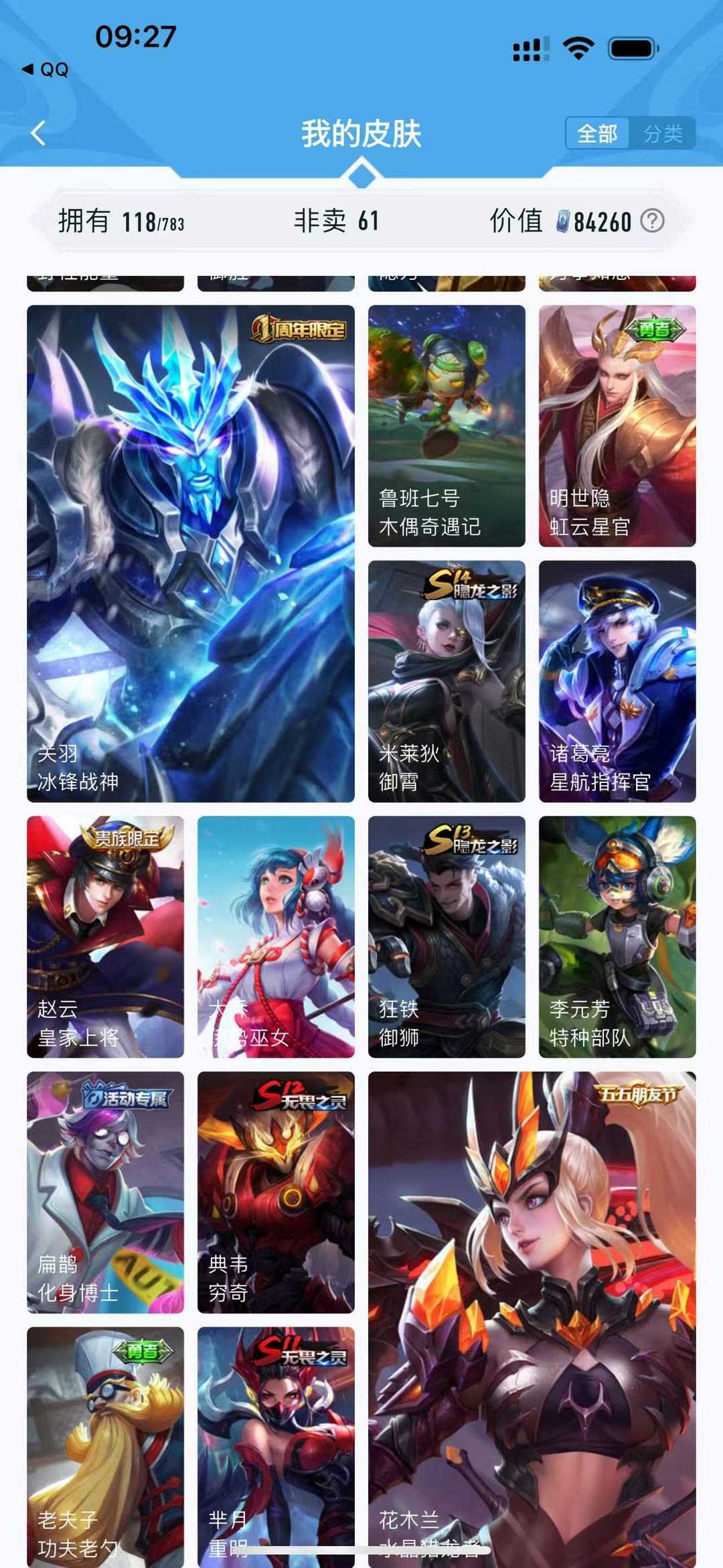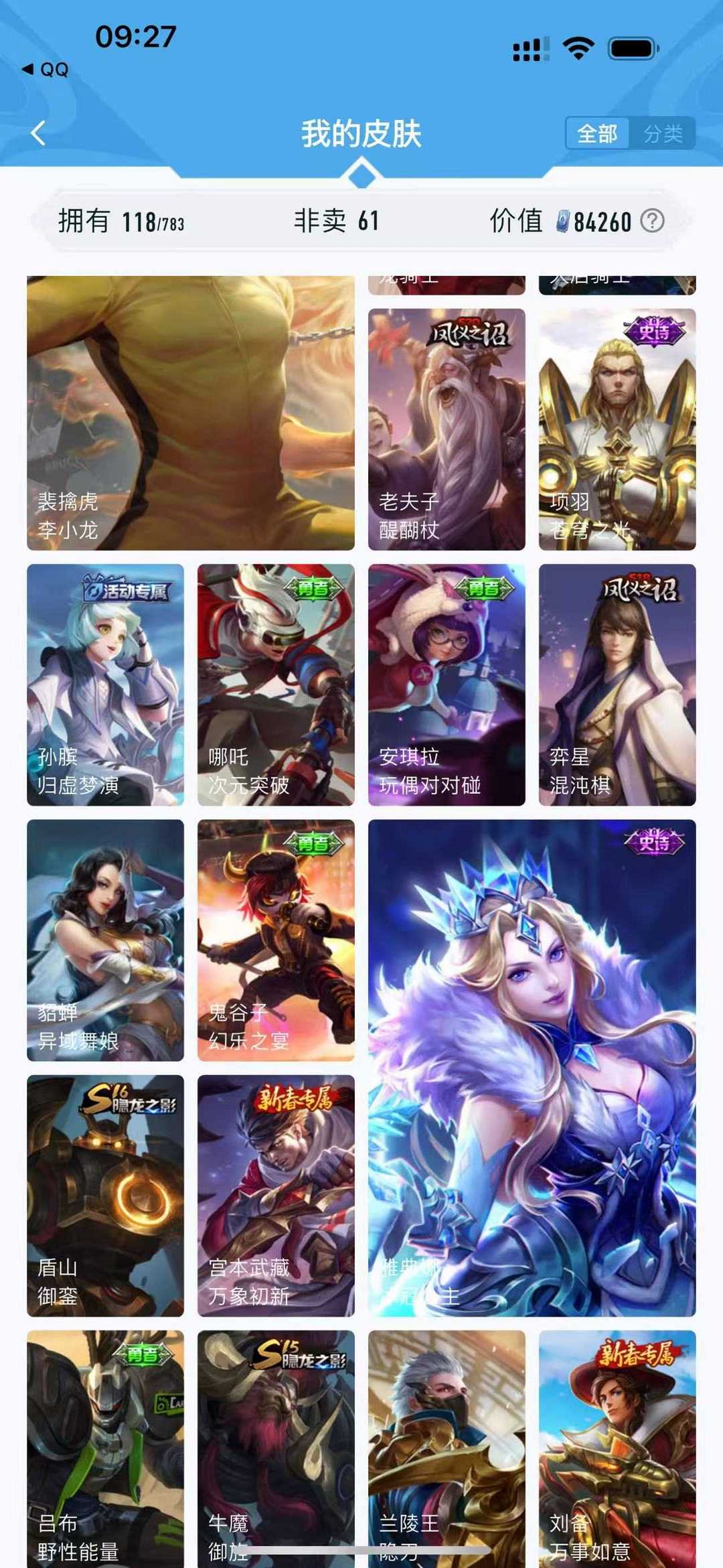【非云直上】537满皮满典藏12星元◎鲁班新皮◎虞姬星元◎天使星元◎白金战神◎妲己绝版星元