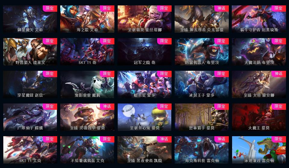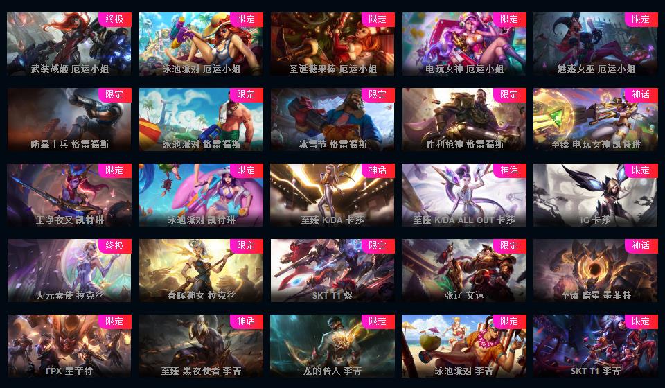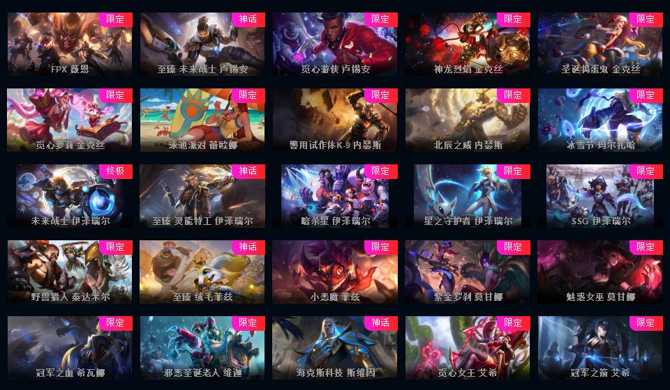 可排位-1607皮-456炫彩-217限定-101传说-29神话至臻-龙虾-至臻卡莎-阿卡丽-寡妇-阿狸-女警-薇恩-ez-万豪-卢锡安等-超多年限-情人节