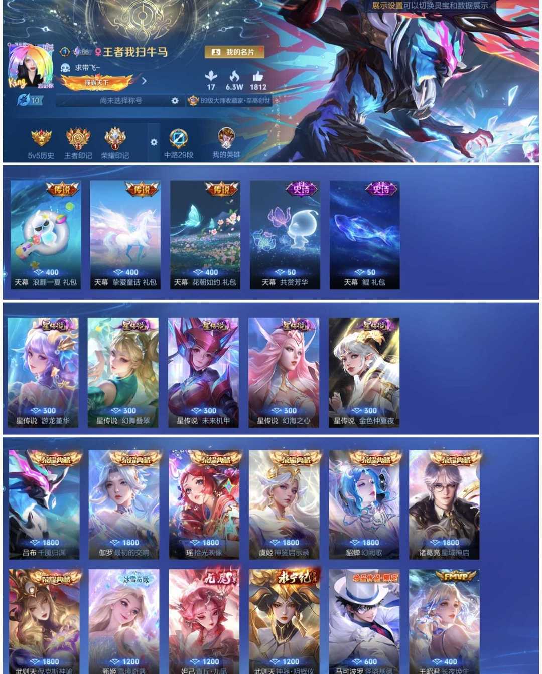 女生号 贵10 多皮肤多传说 别拿那些空号v10来比 要看性价比 貂蝉武则天夏侯惇孙悟空李白鲁班小乔荣耀水晶 妲己九尾无双皮肤 80个传说 473皮肤