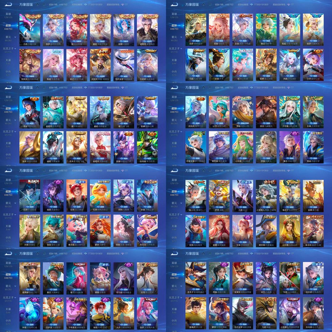【非云直上】537满皮满典藏12星元◎鲁班新皮◎虞姬星元◎天使星元◎白金战神◎妲己绝版星元