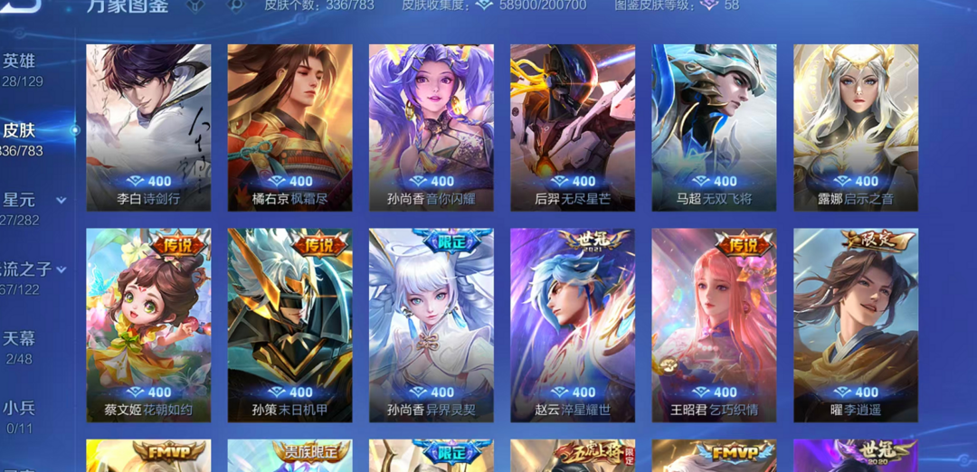 【非云直上】537满皮满典藏12星元◎鲁班新皮◎虞姬星元◎天使星元◎白金战神◎妲己绝版星元