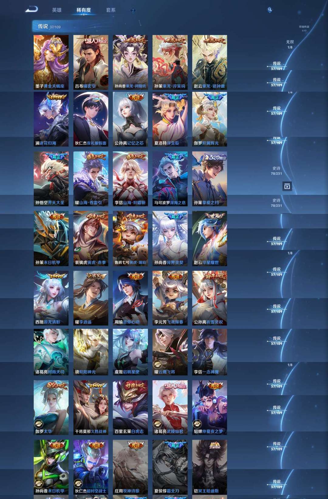 【非云直上】V10★皮肤榜一★539皮满典藏★鲁班时之奇旅会员★虞姬黛羽霜翎星元★吕布白金战神★全能大师★多金标★个性按键