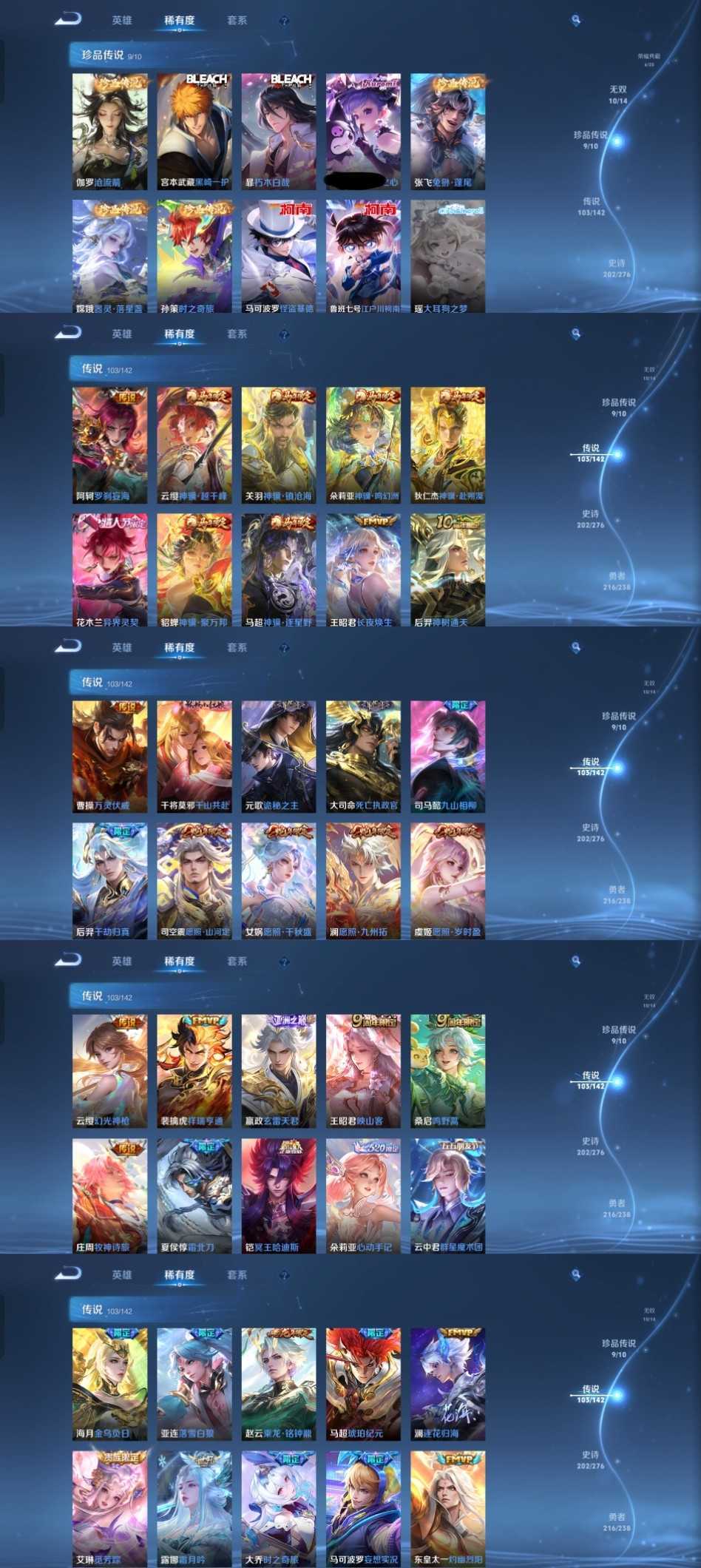 v10、537皮6水4无双、安琪拉-颠倒童话·魔镜、朵莉亚-神骥、遇见神鼓、齐天大圣、白虎志、韩信荣耀典藏、73传说、时之魔女、瑶无双、青丘、九尾、神器明辉仪