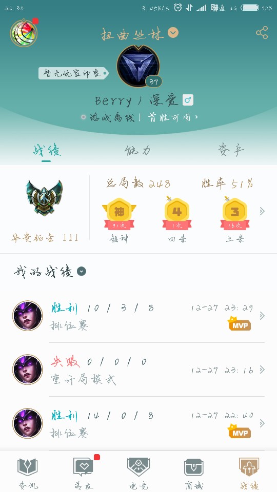 • 游戏区服:英雄联盟 / 联盟四区 / 扭曲丛林