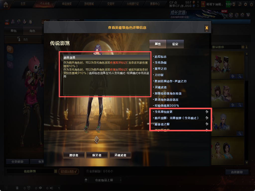 生化炽芒蝶刃♉传说影煞♉满配八面凌龙♉时空猎手生化背包♉14个生化皮肤♉满榴弹不退包全鬼♉无6盘6烈