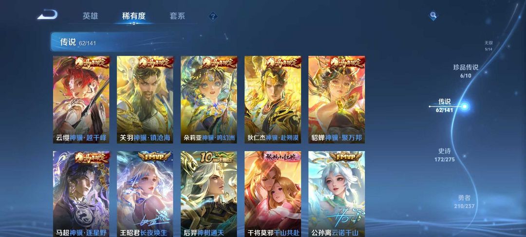 【非沄直接上号】极品V10★三历史国标★430皮★六典藏★诸葛亮新典藏★虎年五限定★鸣剑戈影★活力突击️★多限定