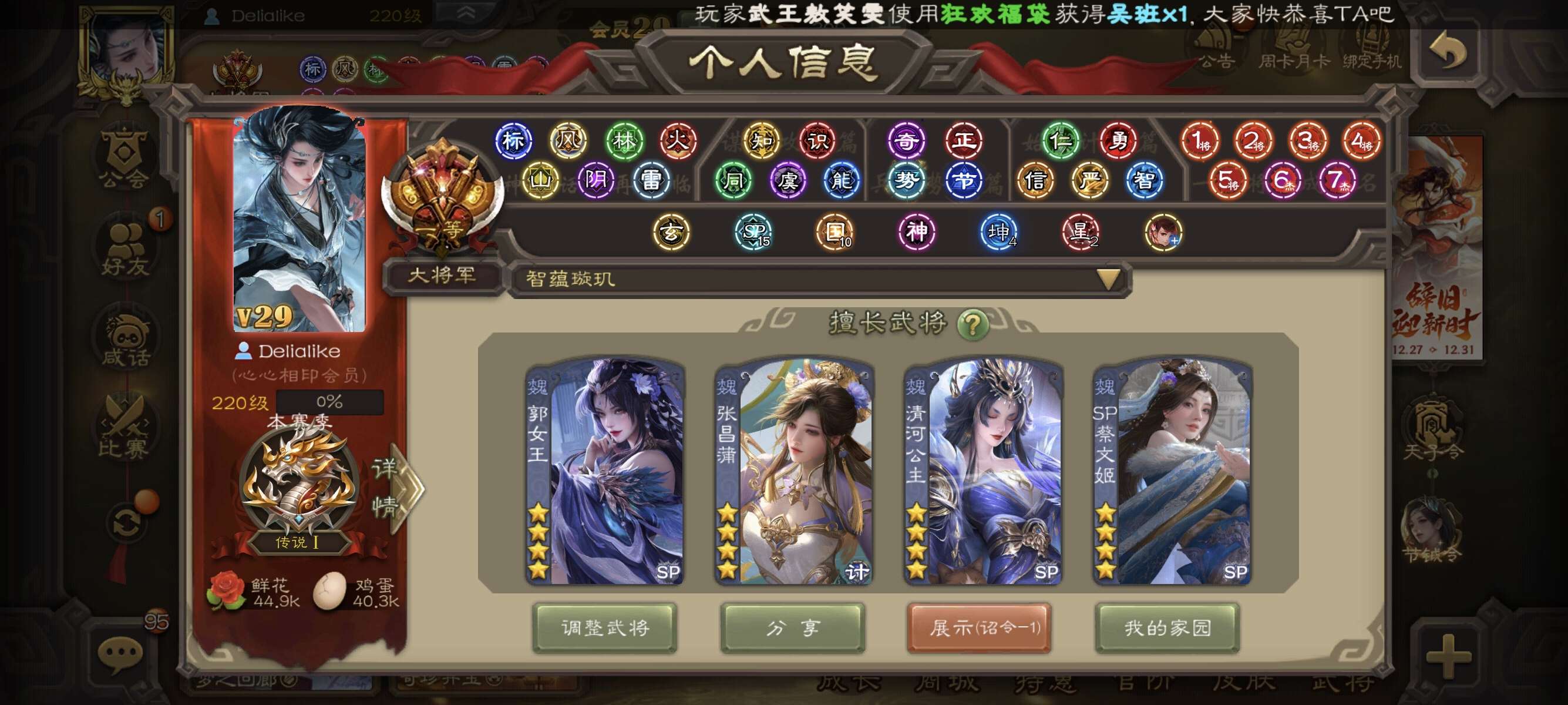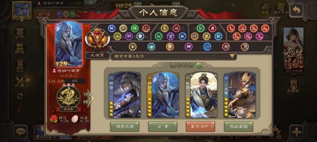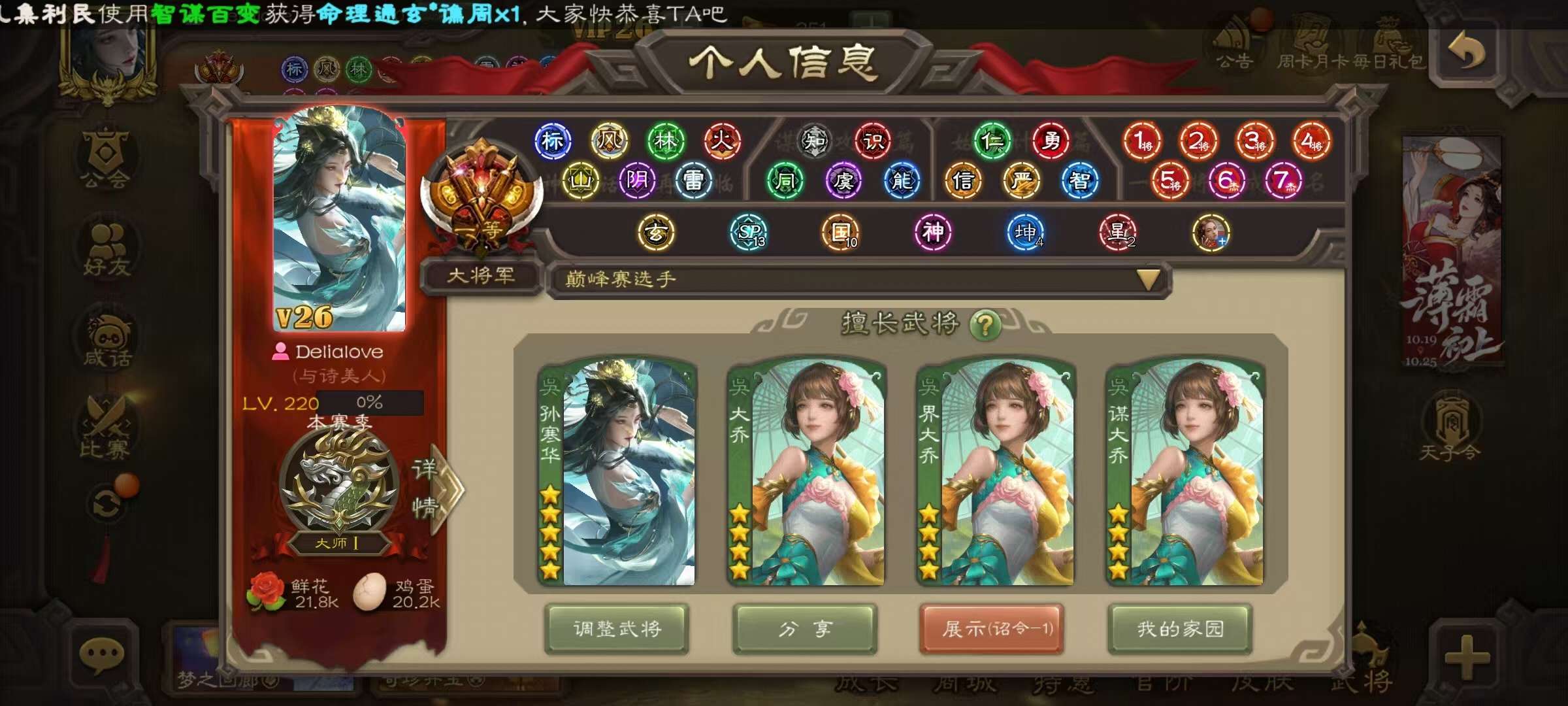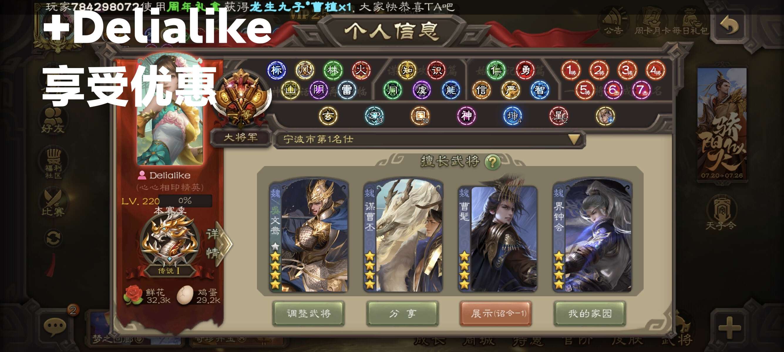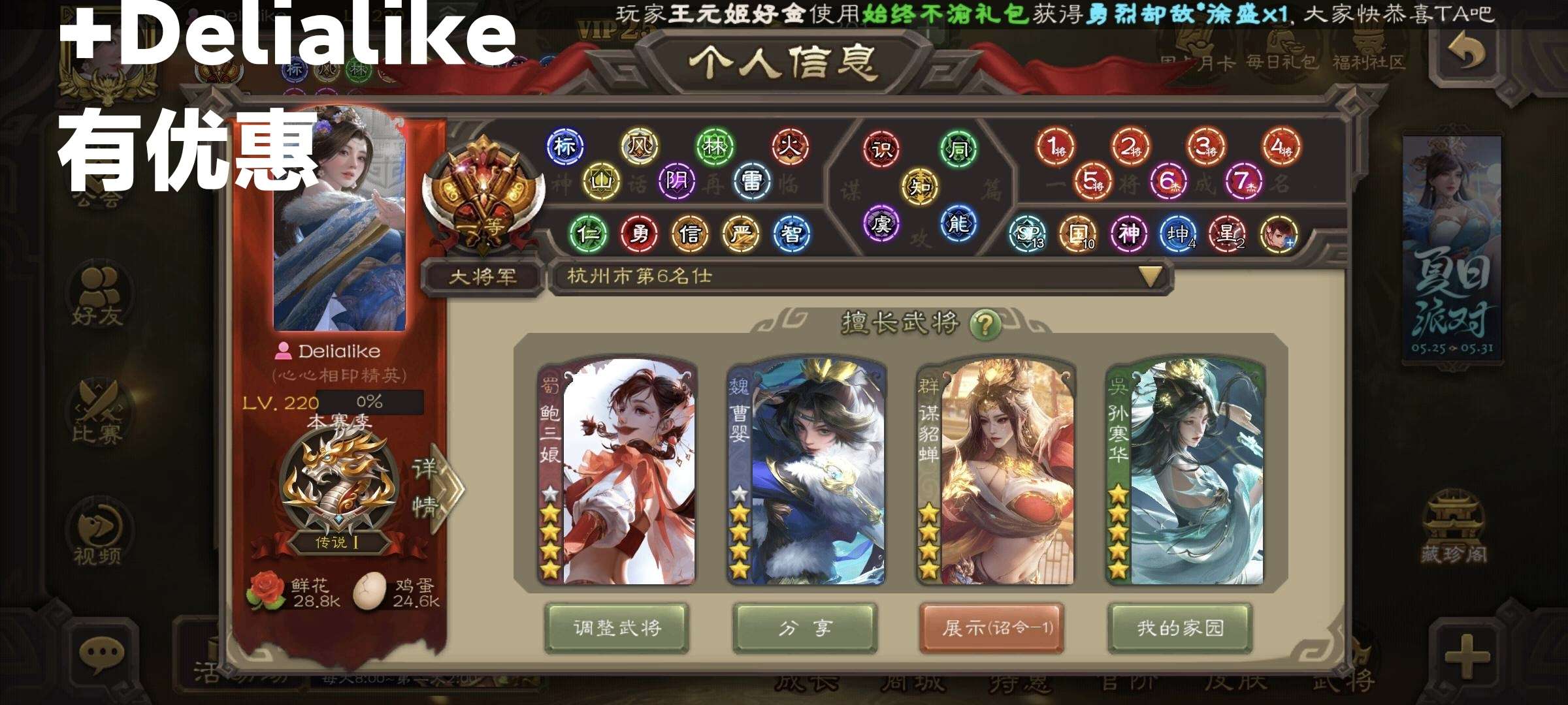 有卡♥排名45♥41W高战力♥全扩全武将全皮肤一等大将军。租号请+Delialike