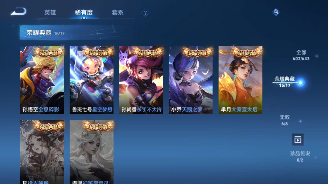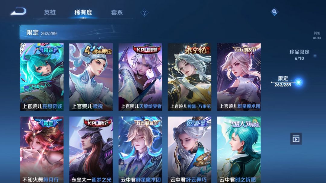 V10、550皮14水、吕布典藏-千魇归渊、云缨-神骥·越千峰、怪盗基德、伽罗星传说红枫、瑶典藏拾光映像、冥王哈迪斯、、龙年限定、齐天大圣