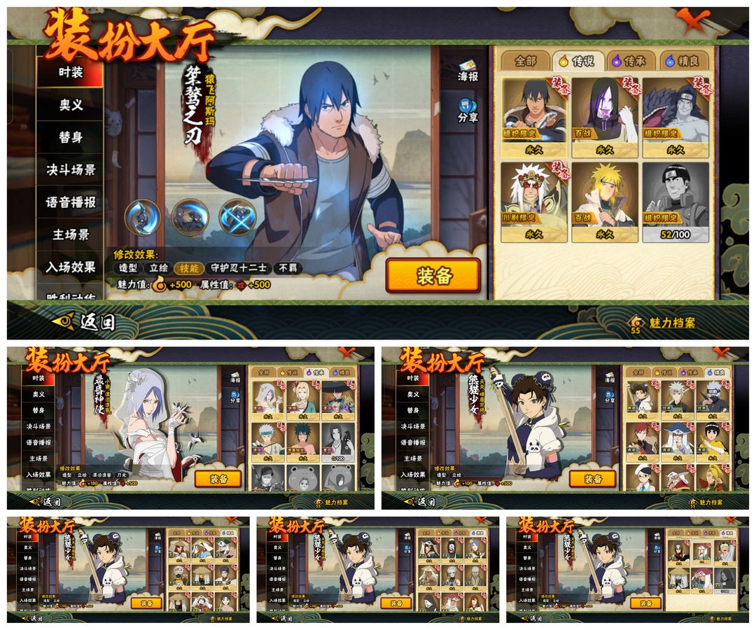 标题介绍不下了具体看图 主流通灵熊猫螃蟹万蛇 雨隐村砂隐村双付费场景 秽土三代超帅648四影集结奥义图 忍法帖除当期外齐全 198点券忍者基本齐全(带皮肤)