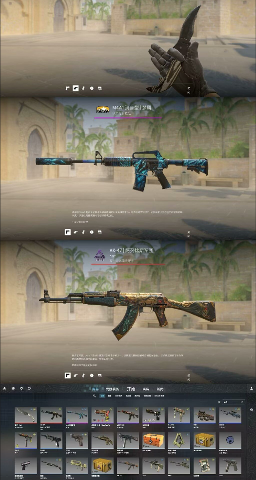 可官匹5e绿色丶弯刀黑色层压板丶m4a1消音梦魇丶ak47阿努比斯军团丶沙漠之鹰轻轨多主战皮肤