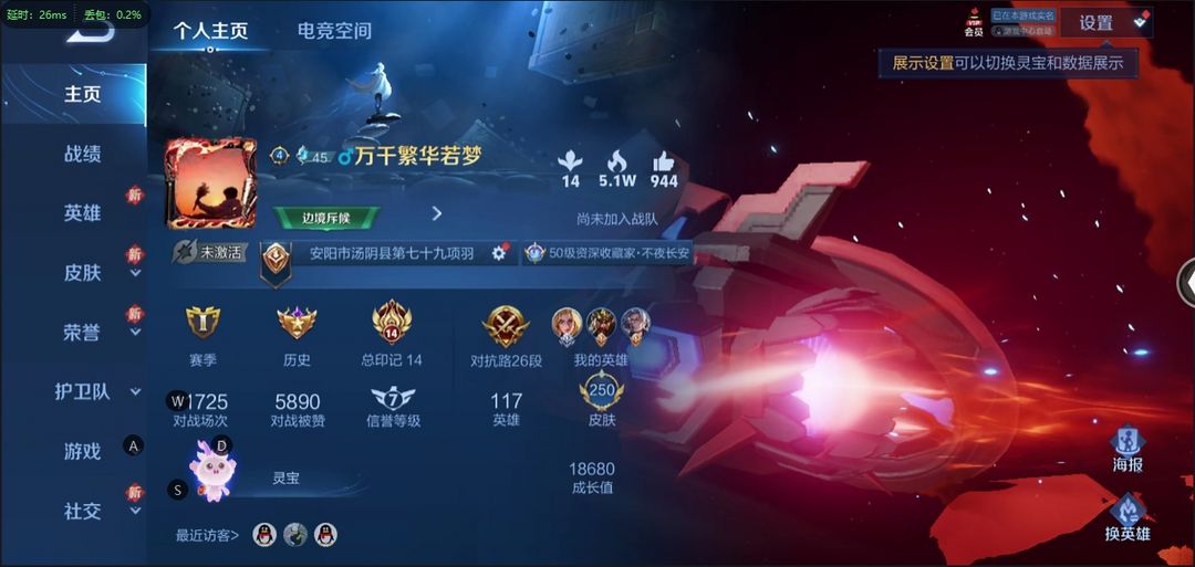 扫码登录❁包天/周划算❁V10❁590+皮肤❁孙悟空无双无相❁青铜小兵皮❁伽罗典藏❁19颗荣耀水晶❁蛇年3套❁年限34套❁3无双❁限定一堆❁手Q212区❁已禁言