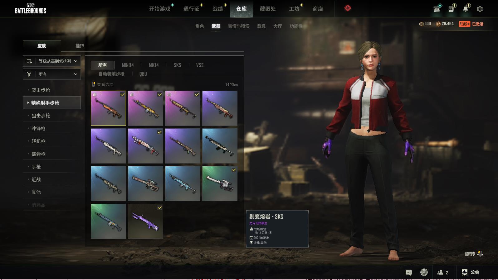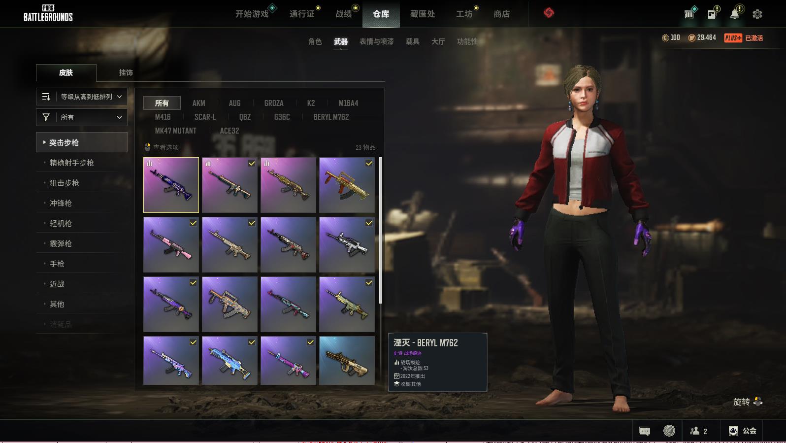 PUBG豪华版可排位,随机2-4级生存等级,湮灭-BERYLM762;黄道猎手-M416;黄金齿轮-BERYLM762;剧变熔岩-SKS;猛虎猎手-SLR;弥诺