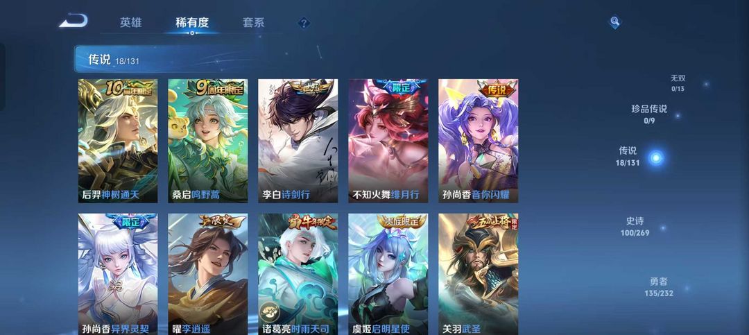 v10、524皮5水4无双、遇见神鼓、齐天大圣、白虎志、韩信荣耀典藏、72传说、愿照·九州拓、时之魔女、瑶无双、青丘、九尾、神器明辉仪