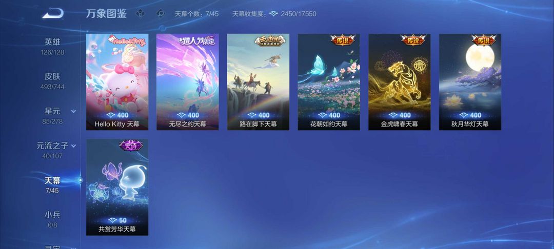 V10、543皮14水、吕布典藏-千魇归渊、愿照·九州拓、愿照·众生和、怪盗基德、伽罗星传说红枫、瑶典藏拾光映像、冥王哈迪斯、、龙年限定、齐天大圣