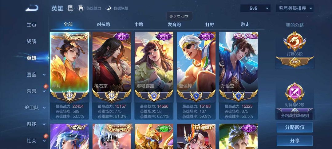 巅峰开⭐86段打野⭐2.2w战力国服芈月⭐历史国服橘右京⭐历史小国标娜可露露夏侯惇孙悟空等