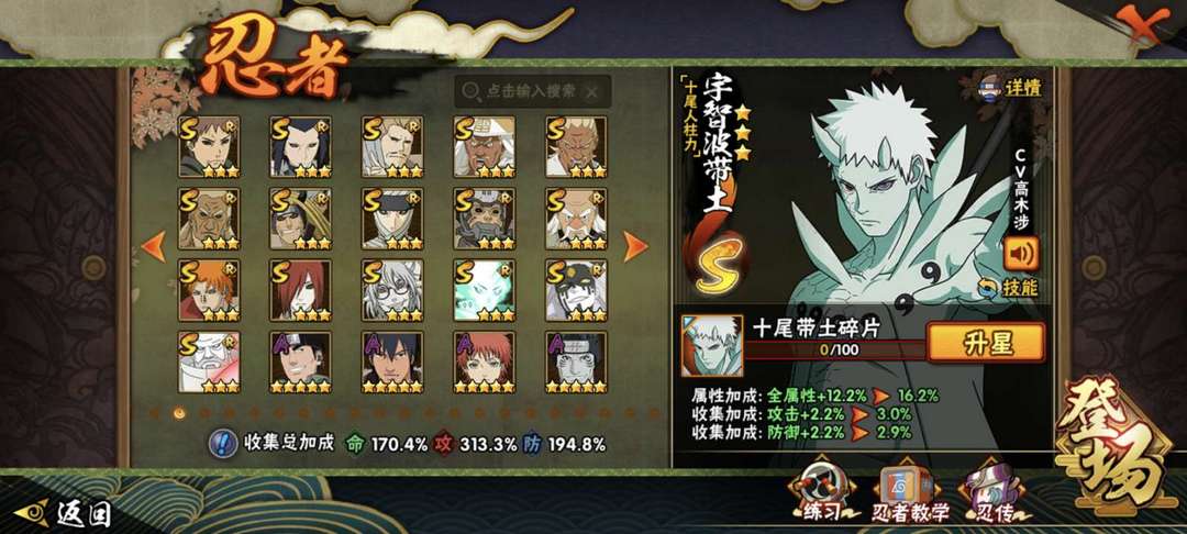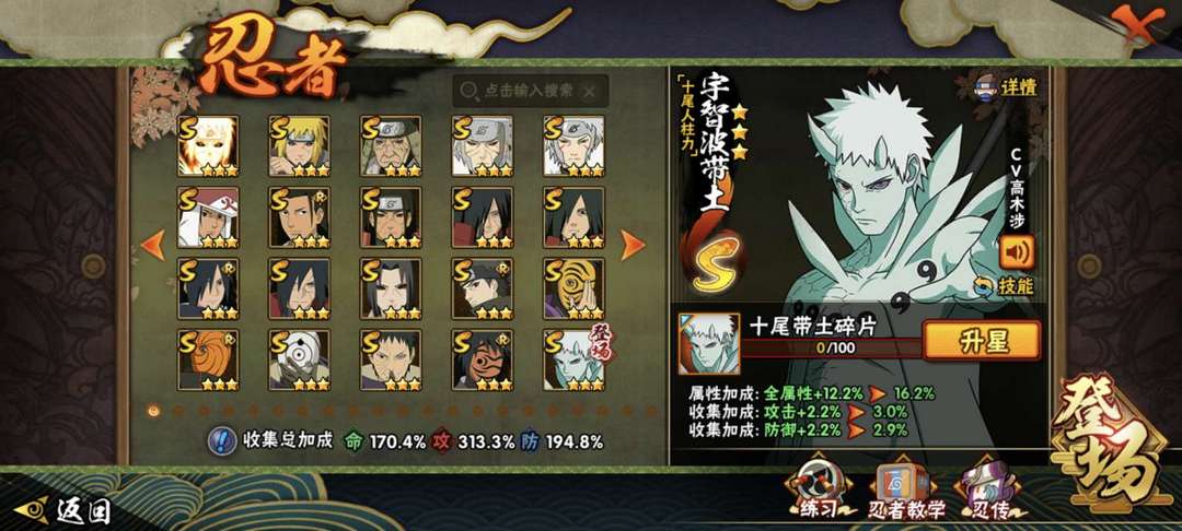 带土(十尾人柱力)✨全S忍✨V15✨3200w✨国服新水✨可带任意团本✨决斗场t0号
