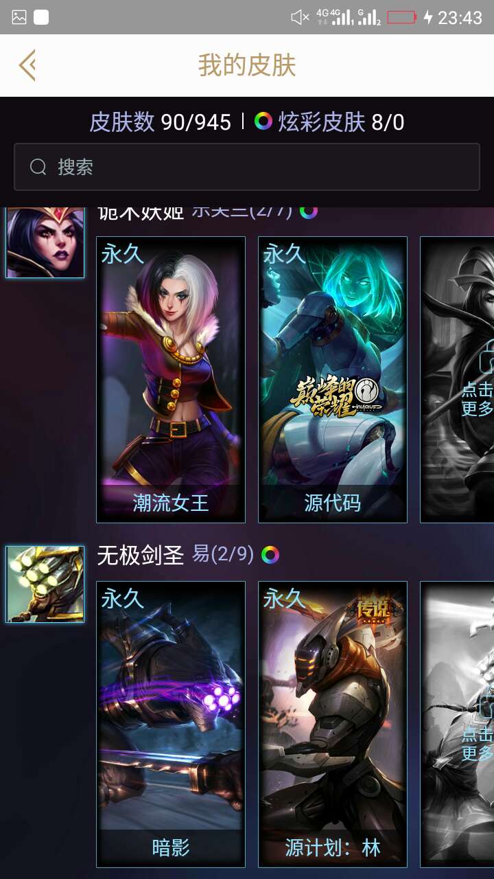听说长得帅的人都进来看了,影流124英雄,104皮肤,各种传说,史诗皮肤。时不时的会更新一下
