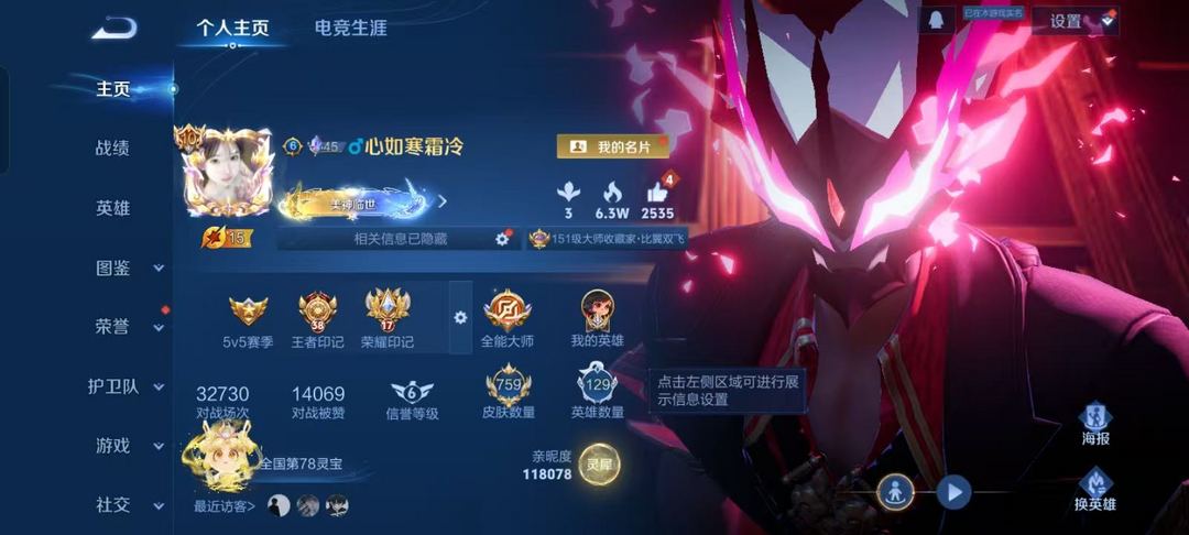 扫码登录❁包天/周划算❁V10❁590+皮肤❁孙悟空无双无相❁青铜小兵皮❁伽罗典藏❁19颗荣耀水晶❁蛇年3套❁年限34套❁3无双❁限定一堆❁手Q212区❁已禁言