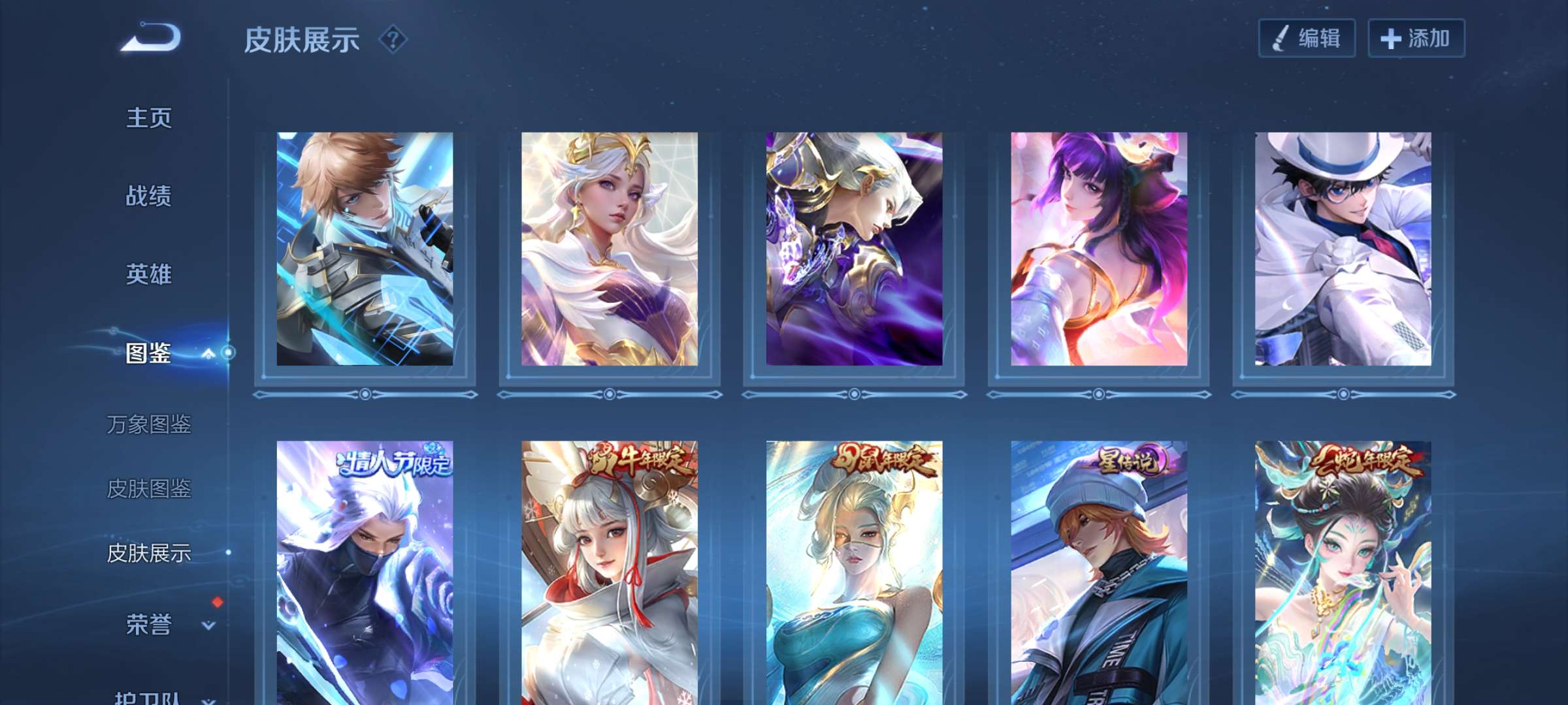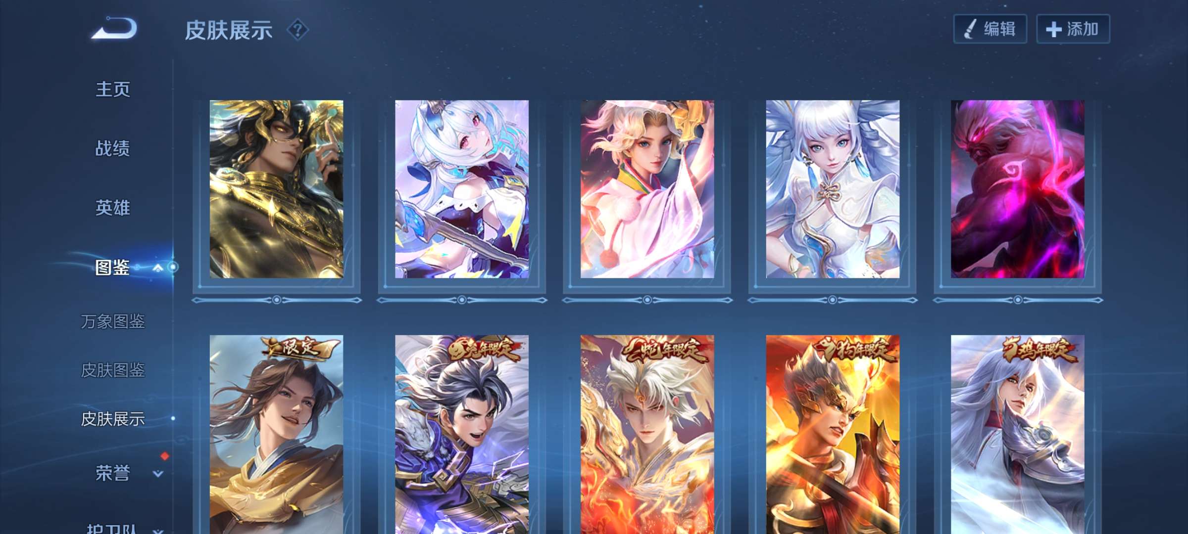 v10、12水555皮、死亡执政官、刘备星传说时之思念、小兵皮肤大耳狗甜茶、瑶无双真我赫兹、愿照·九州拓、怪盗基德、画中仙、至尊宝、凤求凰、神威、天魔缭乱