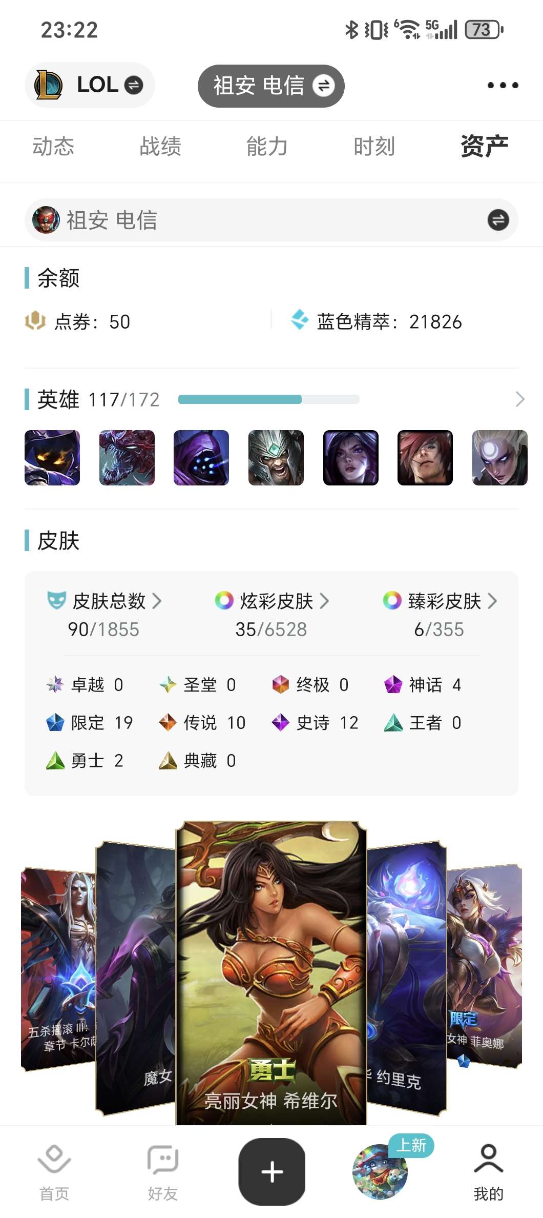 祖安黄金白银号,皮肤英雄多,全英雄,99皮肤;海克斯VN,至臻女枪,玉剑天使,海之歌艾希,冰雪节及胜利皮肤