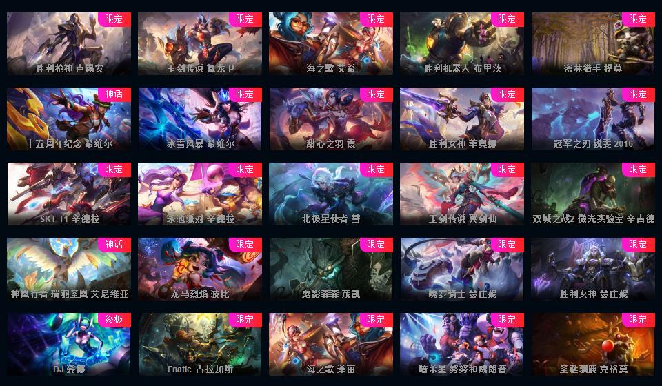 👼 皮肤帝实时更新皮肤 1008皮肤 龙虾 征服者 海克丝系列 主播级土豪号 梦游仙境 花木兰