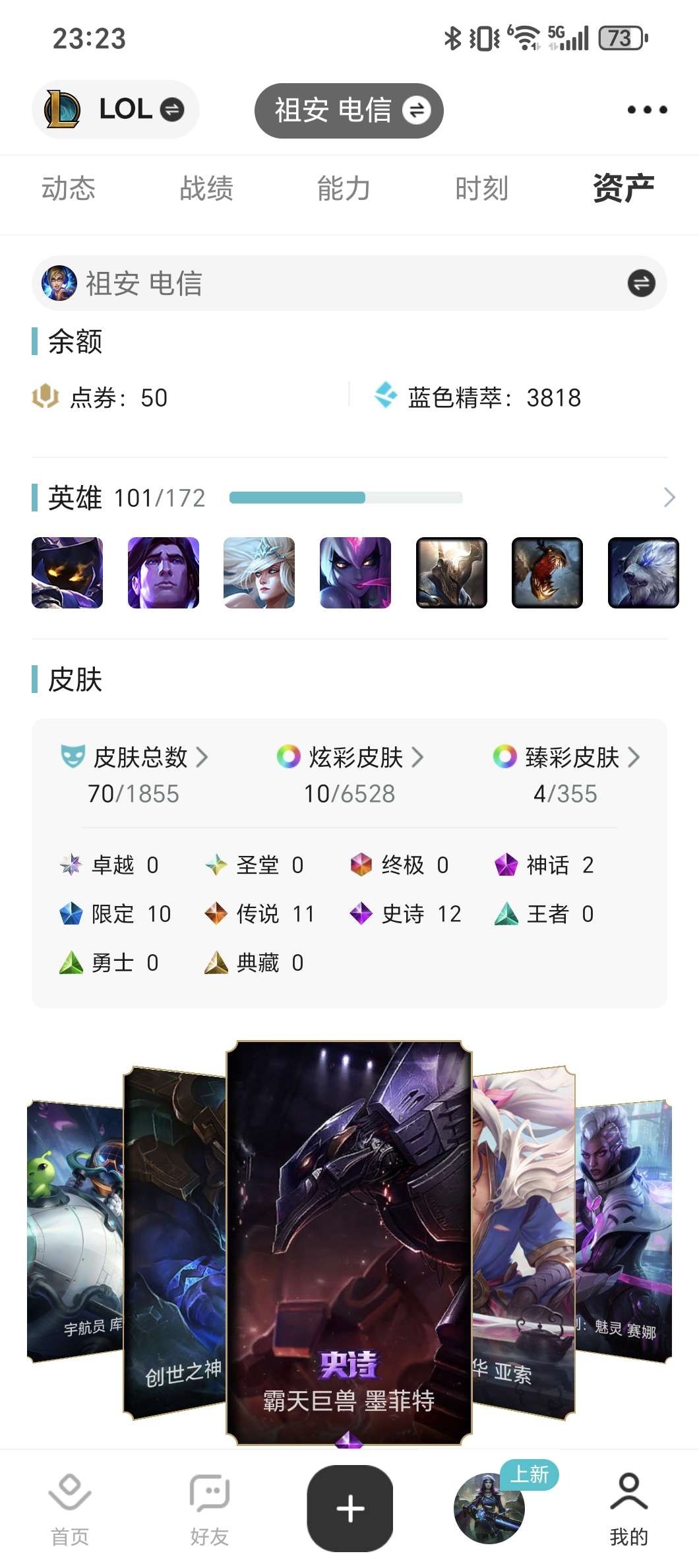 立即租号首页 > 租号大厅 > 英雄联盟 > 联盟一区/祖安 > 2元5小时,青铜号可排位;全英雄,74皮肤,限定皮肤情人节剑姬、光女,冰雪节猪女金克斯,SKT卡莉斯塔等