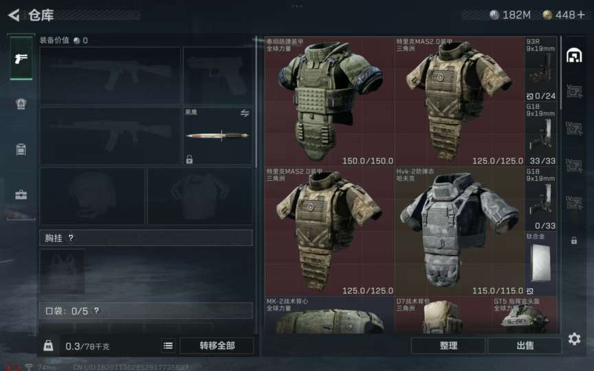 182m纯币222m总价值3六甲6体力4负重