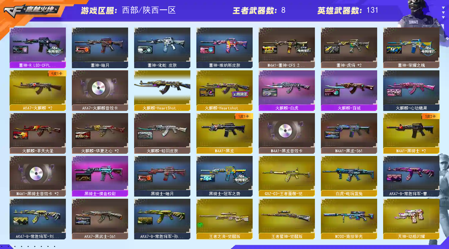 • 游戏区服:穿越火线 / 电信区 / 陕西一区