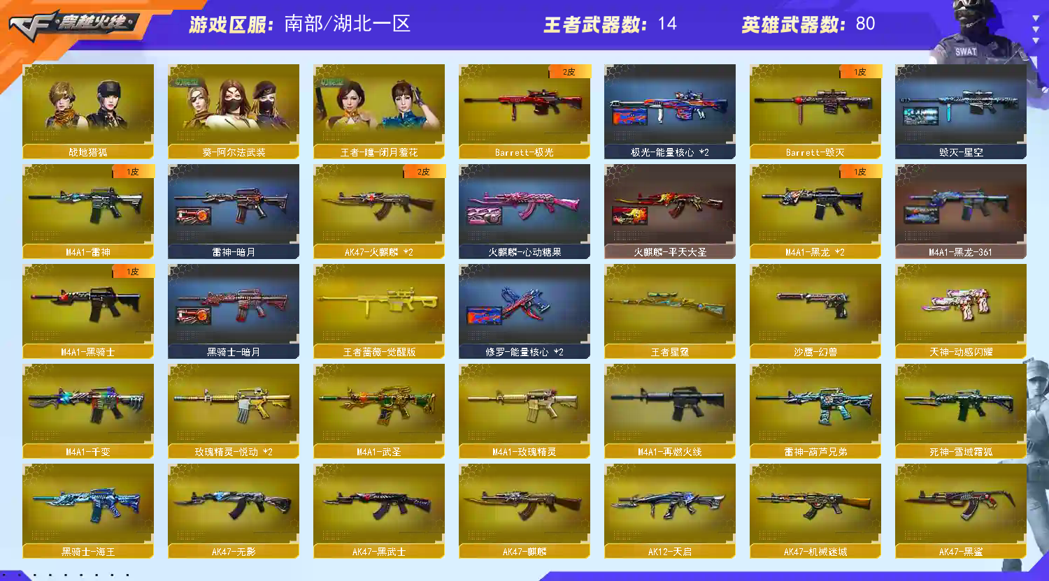 • 游戏区服:穿越火线 / 电信区 / 湖北一区