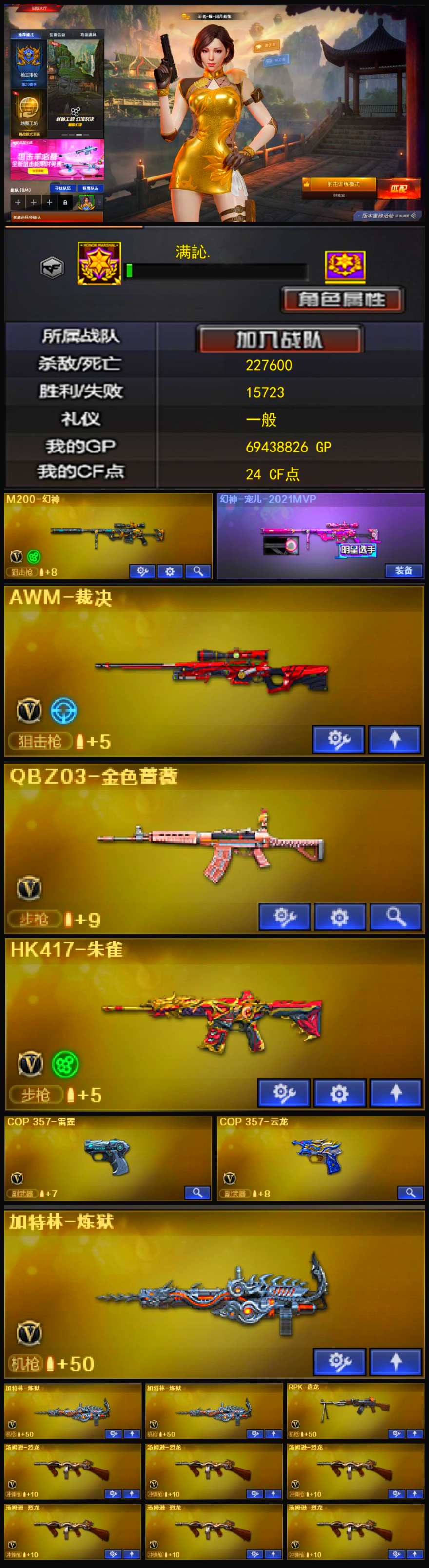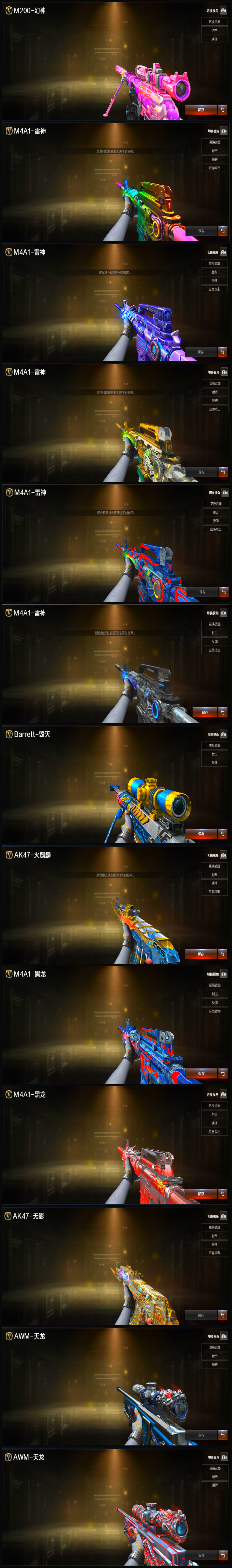 可排位/120V/M200-幻神+宠儿/QBZ蔷薇+6烈+cop云龙+满副生化爆破全装;RPK-盘龙,QBZ03-金色蔷薇,M200-幻神,