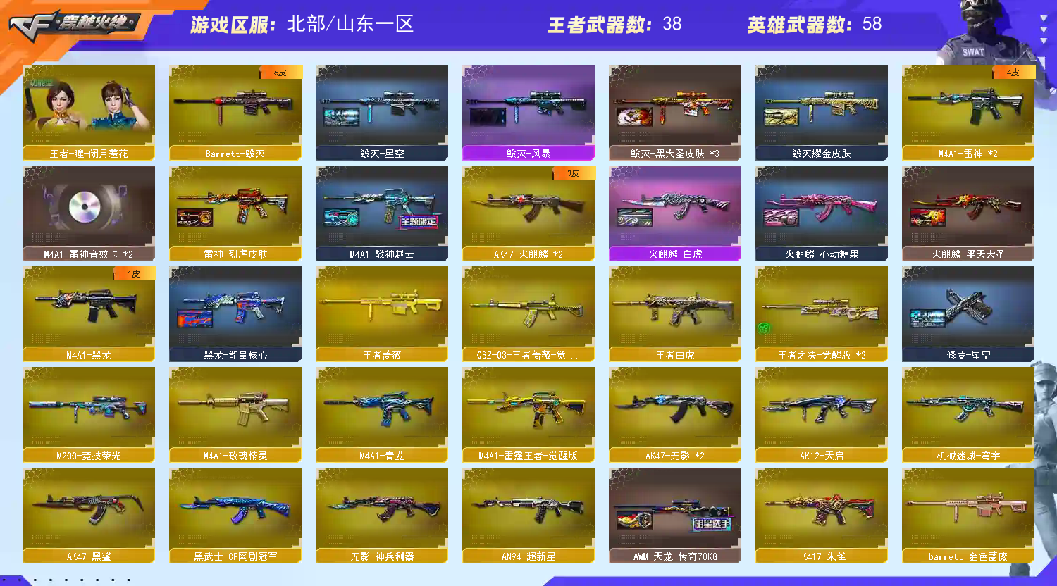 首页 > 租号大厅 > 穿越火线 > 网通区/山东一区 > 超性价比爆破号⭐女帝3传说⭐雷霆王者套⭐幻神黄忠⭐星神⭐王者白虎蔷薇⭐六烈⭐满配副武器⭐2王者COP
