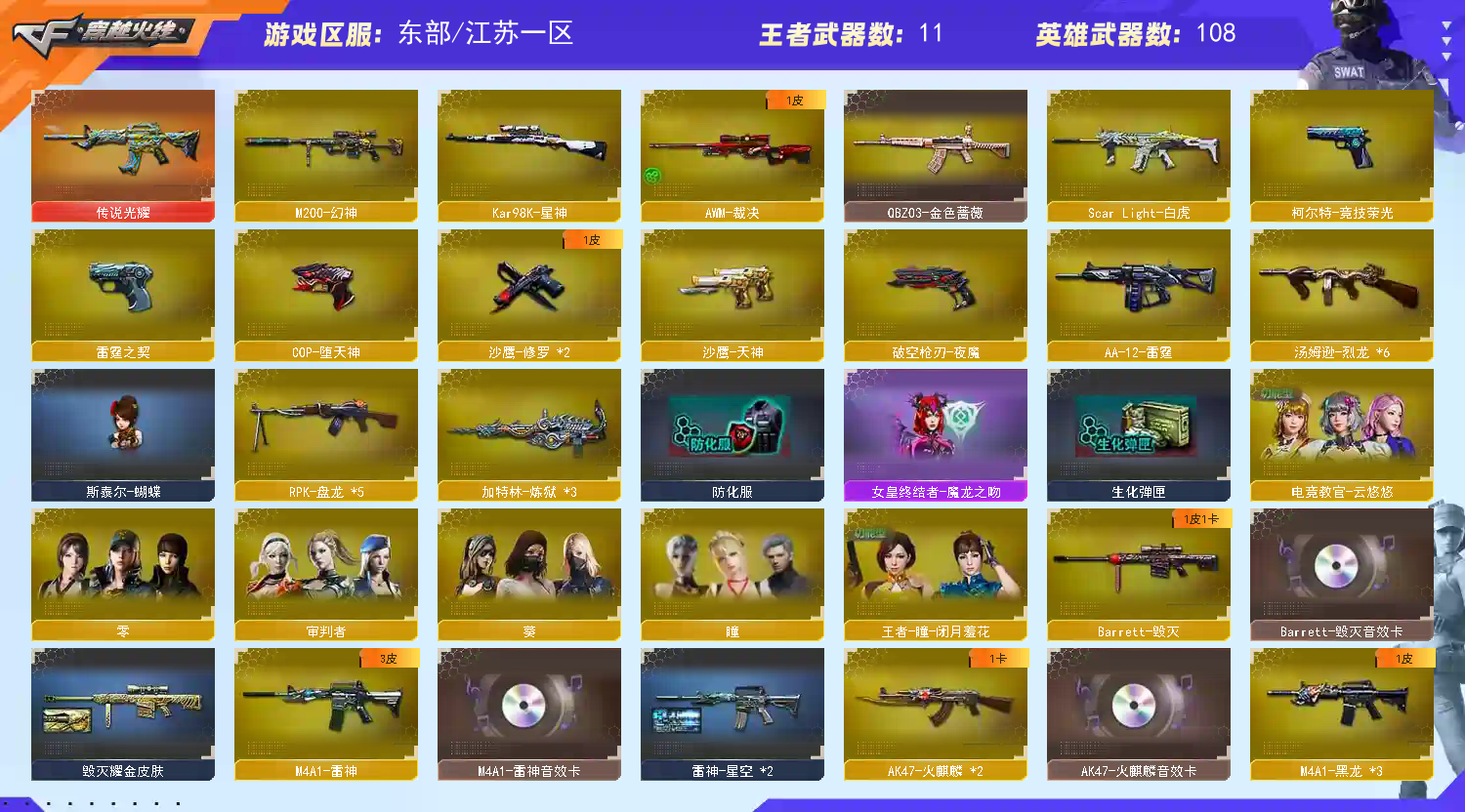 首页 > 租号大厅 > 穿越火线 > 电信区/江苏一区 > 130V/M200-幻神/竞技荣光套/6盘6烈+蝴蝶/98K星神/白虎QBZ蔷薇满副爆破生化全