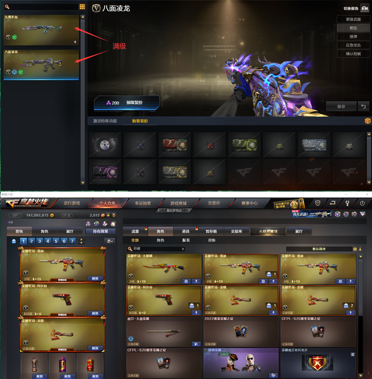 【热门皮肤】: (幻神三件套:幻神、M200-幻神-竞星跃动音效卡、M200-幻神-N9-2022MVP皮肤、幻神-宠儿-2021MVP皮肤、) (裁决-流光秘银、裁决-运输船皮肤、裁决-胜者为王皮肤、) (雷神-传奇N9、雷神-宠儿-2019MVP) (星神-AG-CFPLS21冠军皮肤、毁灭-AG-CFPLS15冠军、修罗-冠军之魂、火麒麟-AG战队皮肤) (雷神-荣耀之魄、火麒麟-CFSTAR、毁灭-荣耀之怒、天龙-CFSTAR、屠龙-荣耀之锋、修罗-CFSTAR) 【套装】: (荣耀世冠套:荣耀世冠-火麒麟、荣耀世冠-雷神*2、荣耀世冠-柯尔特、荣耀世冠-龙啸*2) (竞技荣光套:M200-竞技荣光、柯尔特-竞技荣光*2、擎天-竞技荣光、高爆手雷-竞技荣光、闪光弹-竞技荣光、烟雾弹-竞技荣光) (云龙套:华、QBZ03-云龙、COP357-云龙、云龙扇、黑武士-锦绣游龙、高爆手雷-云龙、闪光弹-云龙、烟雾弹-云龙) (幻兽套:QBZ95-幻兽、沙鹰-幻兽*7、女皇利刃-幻兽、高爆手雷-幻兽、闪光弹-幻兽、烟雾弹-幻兽) (雷霆套:M4A1-雷霆、Barrett-雷霆、COP357-雷霆*2、尼泊尔-雷霆、AA-12-雷霆、高爆手雷-雷霆、闪光弹-雷霆、烟雾弹-雷霆) 【生化】:八面凌龙(满级!最强生化神枪)、九霄圣角、幻神(打生化的神狙)、炽芒蝶刃(蝴蝶刀,生化加速神刀,最帅的耍酷刀)、斯泰尔-蝴蝶🦋、斯泰尔-幻面灵狐、毒蜂、异变清道夫、双面神、KAC-狂怒咆哮、死亡之眼、M14EBR-玄武、轻型军用手斧-镜、MK5-炽火炎龙、 机械猎手-幻灵猎姬、圣拳猎手-炽雪、钢铁终结者-残翼恶魔、女皇终结者-堕落天使、恶魔剑客-烬使者、钢铁终结者-湮灭之柱、女皇终结者-魔龙之吻、救世主-黑桃战神、终极猎手-秦魂将军、虚空终结者-暗域熔岩、终极猎手-荒漠刀客、 迷你生化手雷、生化手雷-小钢、生化手雷、生化手雷-机甲核心、雄黄酒手雷、 绿色巨人、迷雾幽灵、妖姬、变异宝贝、灵魂忍者、疯狂宝贝、伪装幽灵、夺命之镰、黄金生化钩、生化弹匣、防化服、减少停顿道具(不退包)、6盘6烈6炼 华(佣兵觉醒:无需装弹、移动速度提升、捕食者之眼、生化背包变更) 电竞教官-云悠悠(佣兵觉醒:无需装弹、生化觉醒:狂暴化、捕食者之眼、生化背包变更) 超能女侍·觉(佣兵觉醒:无需装弹、移动速度提升、捕食者之眼、生化背包变更) 王者潘多拉(佣兵觉醒:无需装弹、生化觉醒:狂暴化、捕食者之眼、生化背包变更) 【音效】:M200-幻神-竞星跃动音效卡、加特林-炼狱音效卡、天神-动感闪耀音效卡、烈火-动感闪耀音效卡、Barrett-极光音效卡、擎天-云海游龙音效卡、AK47-火麒麟音效卡、烈龙-云海游龙音效卡、AWM-昌龙-怀旧音效卡、死神-雪域霜狐音效卡、屠龙-云海游龙音效卡、Barrett-毁灭音效卡、M4A1-雷神音效卡、炼狱-百战金芒-庆典舞曲音效卡、Barrett-碧霄极光音效卡、沙鹰-修罗-庆典舞曲音效卡、白虎-庆典舞曲音效卡、屠龙-电竞之星-竞星跃动音效卡、修罗-云海游龙音效卡、HK417-朱雀-电竞之星-竞星跃动音效卡、柯尔特-电竞之星-竞星跃动音效卡、 【王者】:王者之心、王者之影、王者芳薇、王者之幻、王者之魄、王者之武*3、炫金千变*3、玫瑰精灵悦动、烈龙-悦心、炼狱-悦蓝*2、王者蔷薇、王者之光、王者之怒、炫金毁灭、炫金天龙、王者之魂、王者之灵、炫金天神、炫金修罗*4、王者之刺、王者之锋、王者之击、王者之瞳、王者樱-热浪之夏、王者-瞳-闭月羞花、王者潘多拉 【皮肤】:黑骑士-伏羲、雷神-机甲刑天皮肤、龙啸-蛇姬皮肤、金色蔷薇-电竞之星皮肤、火麒麟-百城、炼狱-迷彩皮肤、裁决-流光秘银、裁决-运输船皮肤、炼狱-电子连击皮肤、死神-机甲核心皮肤、雷神-宇航兔皮肤、火麒麟-盘古、雷神-源计划2.0专属皮肤、火麒麟-雷神、Barrett-金色蔷薇-蛇姬皮肤、黑骑士-破界皮肤、雷神-暗月、毁灭-神秘黑洞皮肤、死神-秘银、炼狱-玩具枪皮肤、雷神-化蛇皮肤、火麒麟-心动糖果、毁灭-百城浙江皮肤、黑龙-暗月、屠龙-惊鸿皮肤、毁灭-虹光风暴皮肤、天龙-秘银、无影耀金皮肤、麒麟刺-萌杀皮肤、炼狱-月皮肤、火麒麟-平天大圣、M4A1-千变-孔明皮肤、AK47老兵传说皮肤、毁灭-英雄计划皮肤、屠龙-春桃皮肤、龙啸-清清莓果皮肤、裁决-胜者为王皮肤、 (黑龙-能量核心、无影-能量核心、天龙-能量核心、极光-能量核心、雷神-能量核心、修罗-能量核心) (修罗-星空、烈龙-星空、雷神-星空、毁灭-星空) 【挑战】:《主武器》:传说梦魇、冰龙粉碎者-白马银枪、激光毁灭者Ⅲ、激光毁灭者Ⅲ-白马银枪、征服者-超越2、神圣爆裂者-末日Ⅲ、征服者-超越2、神罚、M240B-苍雷、末日裁决者、《副武》:巡航者、《近武》:黄金魔能环、末日之拳、双龙-秘银、斩神刀、冰火魔兽、夺魂、迷你波特博士、迷你牛牛、迷你深渊冰龙、魔能环、魔能镰刀、萨拉坦铁棍、死亡之珠、唐刀-大唐荣耀、唐刀-青花瓷、虚空之槌、《投掷》:反应堆手榴弹、魔花手雷、深渊终结者手雷、手雷-波特魔方、无尽虚空手雷【热门皮肤】: (幻神三件套:幻神、M200-幻神-竞星跃动音效卡、M200-幻神-N9-2022MVP皮肤、幻神-宠儿-2021MVP皮肤、) (裁决-流光秘银、裁决-运输船皮肤、裁决-胜者为王皮肤、) (雷神-传奇N9、雷神-宠儿-2019MVP) (星神-AG-CFPLS21冠军皮肤、毁灭-AG-CFPLS15冠军、修罗-冠军之魂、火麒麟-AG战队皮肤) (雷神-荣耀之魄、火麒麟-CFSTAR、毁灭-荣耀之怒、天龙-CFSTAR、屠龙-荣耀之锋、修罗-CFSTAR) 【套装】: (荣