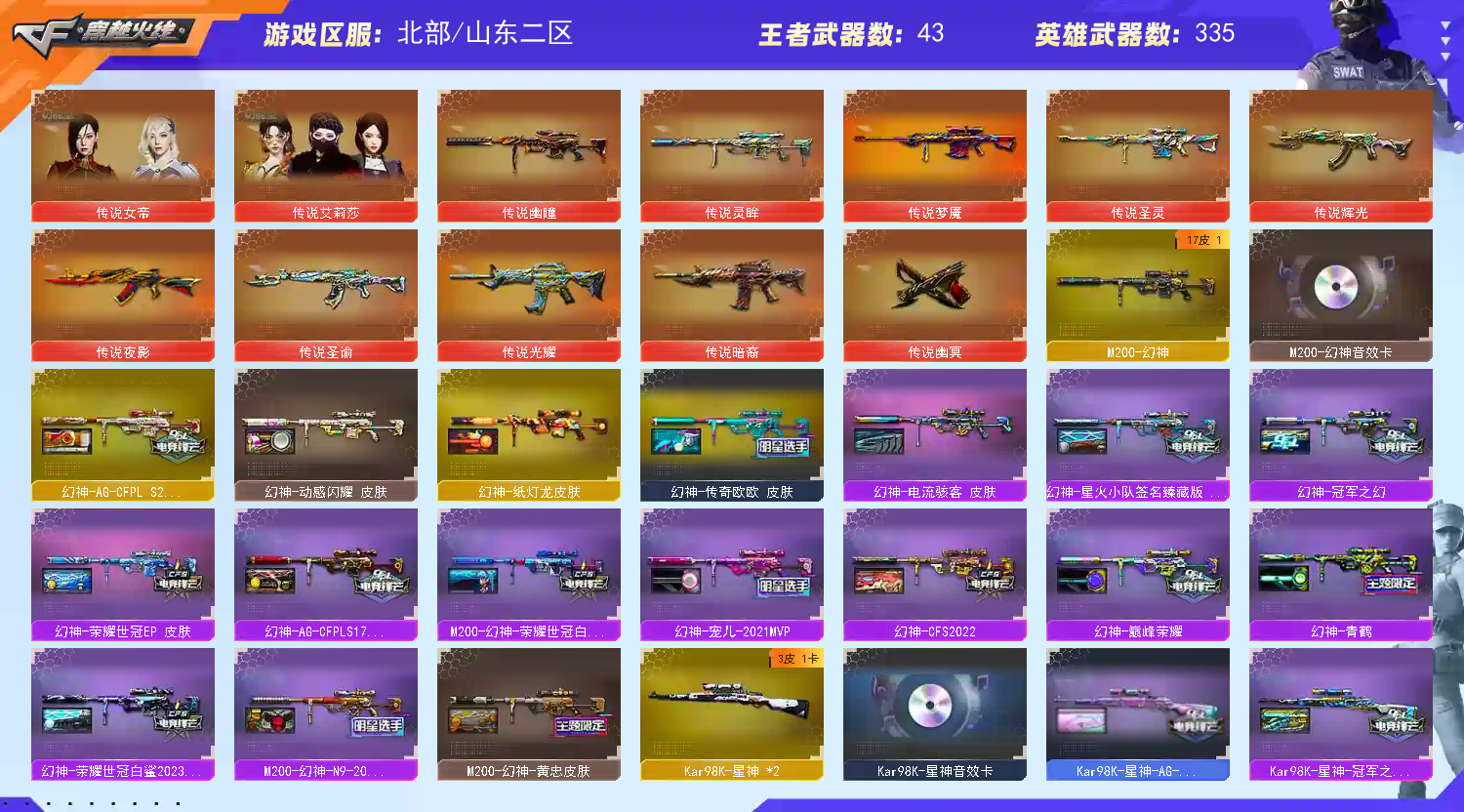 幻神:EP世冠 AGS24冠军 白鲨世冠23 传奇欧欧 星火小队 白鲨世冠 ag 巅峰荣耀 宠儿 念旧 冠军 2022 动感闪耀 青鹤 纸灯笼 电流骇客 黄忠。幻神音效卡 QBZ: 宠儿 冠军之薇 cfs2024 ag s19冠军 白鲨巅峰荣耀 纸灯笼 枪娘阿敏 音效卡 雷神全冠军赛事皮肤 音效卡 女帝 艾莉莎 关小雨 晴雅 鹰 荒漠琉璃 沙漠玫瑰 影豹 樱 枪娘樱 雨棠 审判者 云悠悠 兰 魅影 王者春 幻灵套 夜魔套 竞技荣光套 王者雷霆套 电竞装甲套 神工天巧套 堕天神套 雷霆套 荣耀世冠套;USP-雷暴,柯尔特-无冕之王,荣耀世冠-柯尔特,柯尔特-荣耀世冠白鲨2023,传说幽冥,柯尔特-冠军之特,炽芒蝶刃,