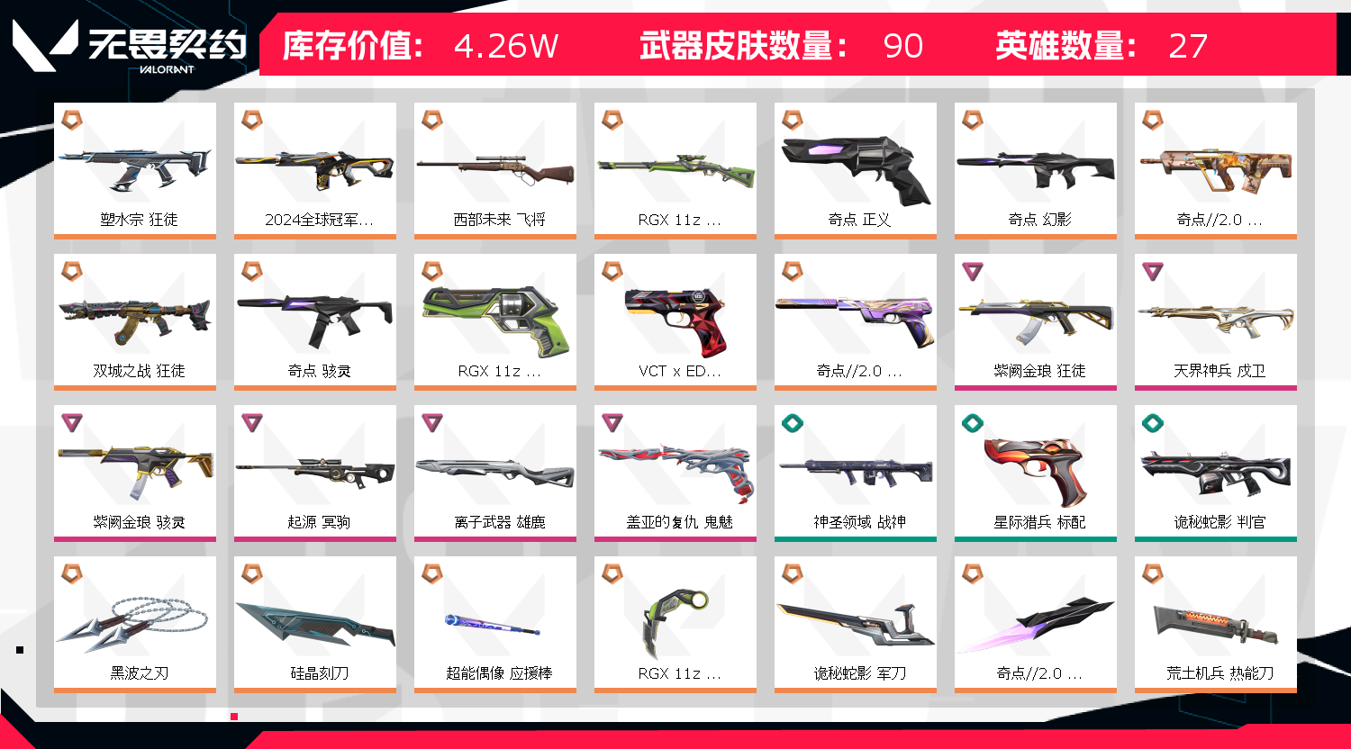 • 皮肤资产价值: 42610