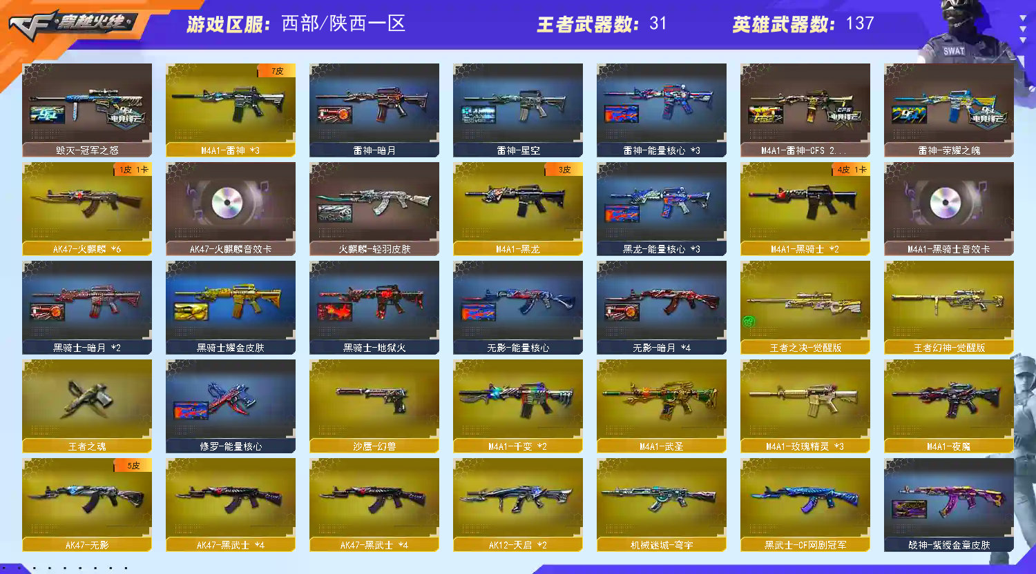 • 游戏区服:穿越火线 / 电信区 / 陕西一区