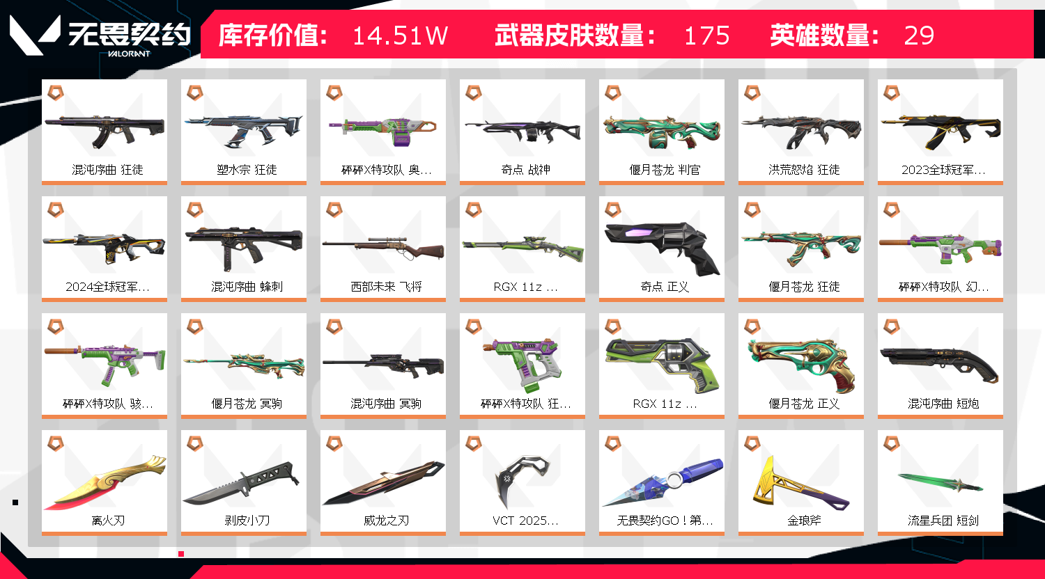 首页 > 租号大厅 > 无畏契约-wegame > wegame/wegame > 冻结协助可解❤️赋能挂饰❤️全武器有皮肤炫彩十五万大库离火2000R点❤️25爪刀标配